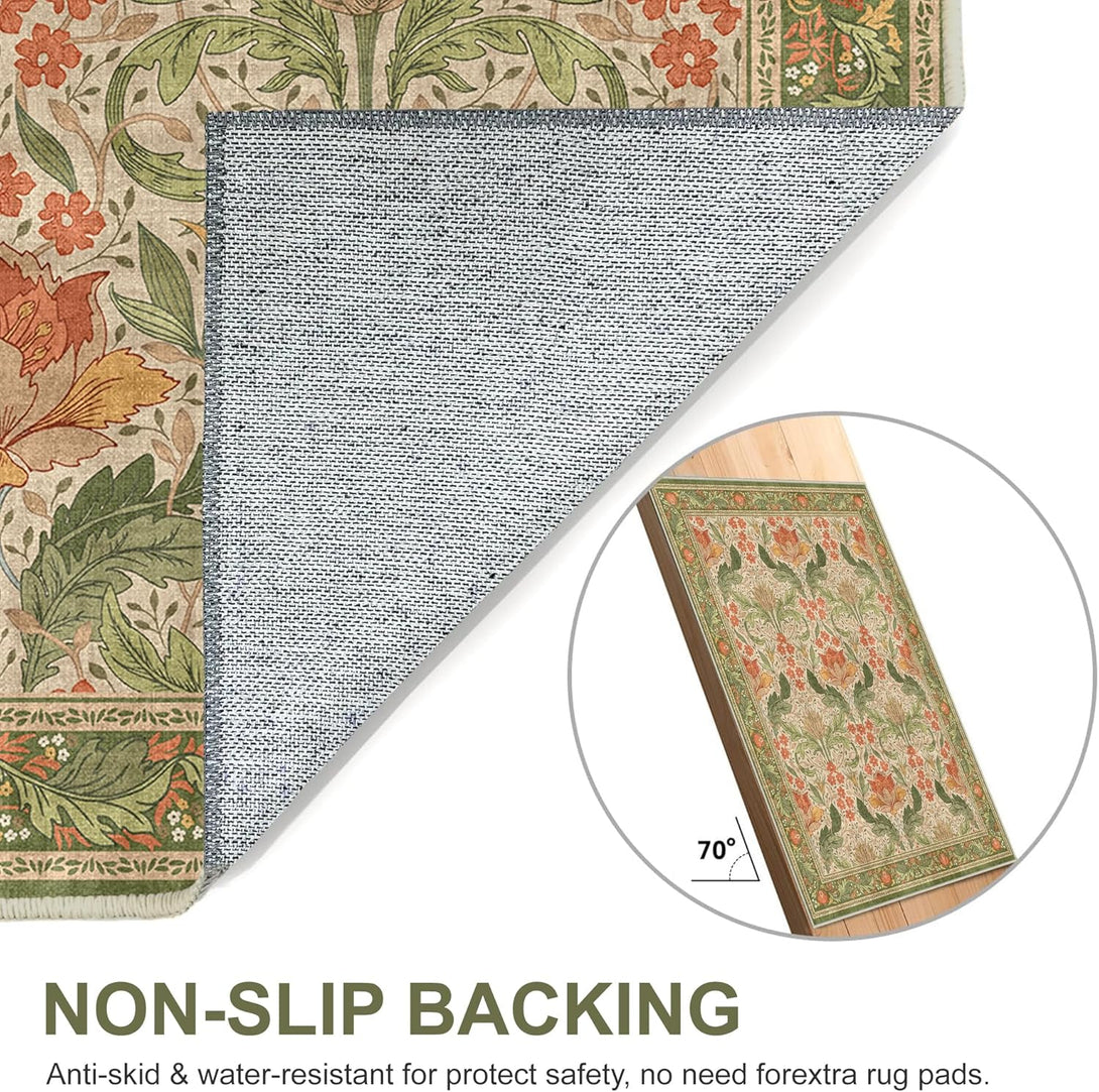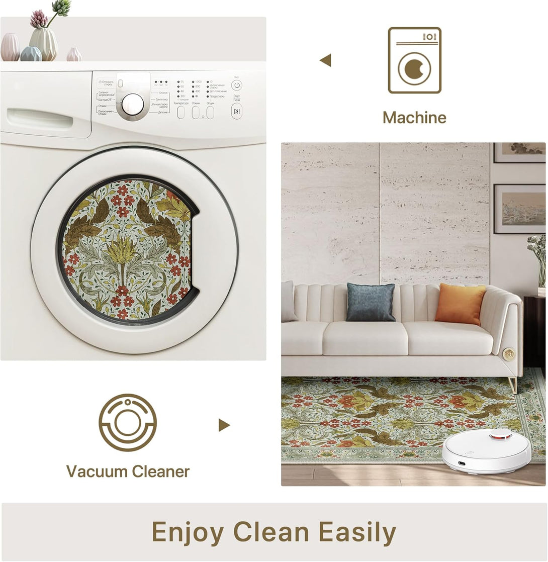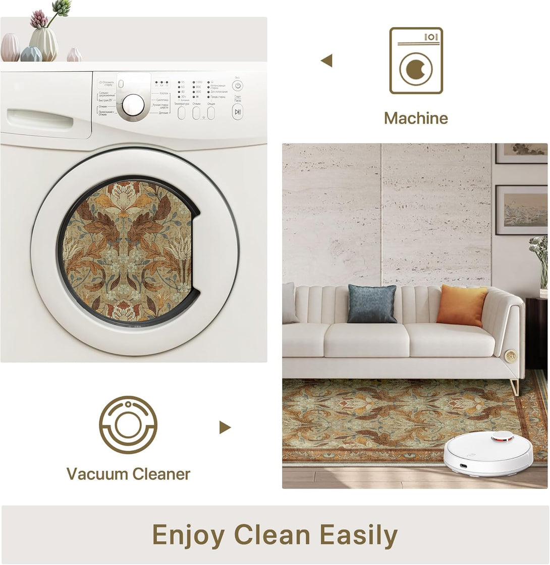 - 【Machine Washable】: This vintage floral rug is machine washable for easy maintenance, ensuring a clean and fresh look with minimal effort. Simply toss it into the washing machine on a gentle cycle with cold water, and it will come out looking fresh and vibrant. Ideal for busy households, it saves you time and energy while keeping your space looking great.