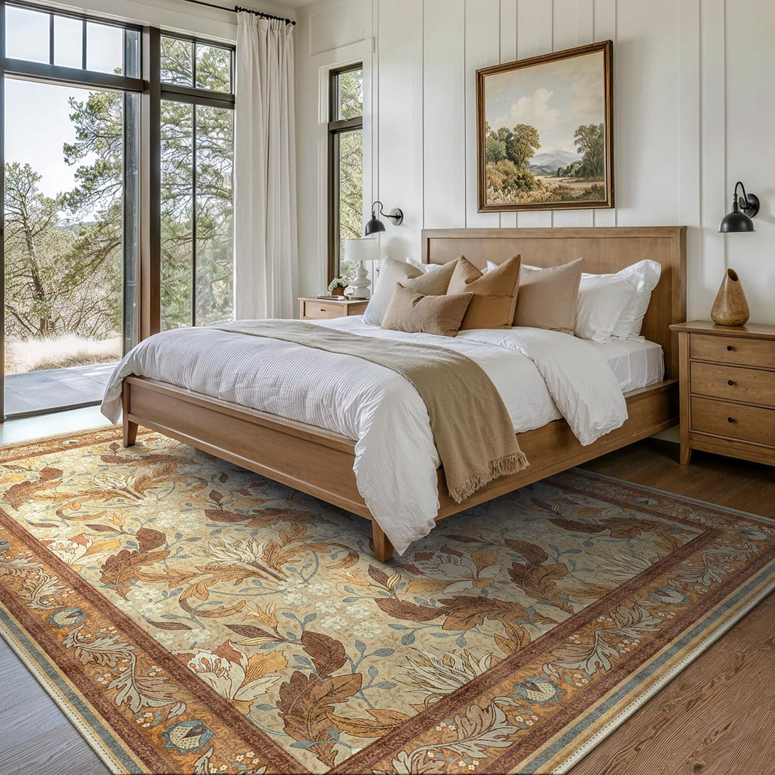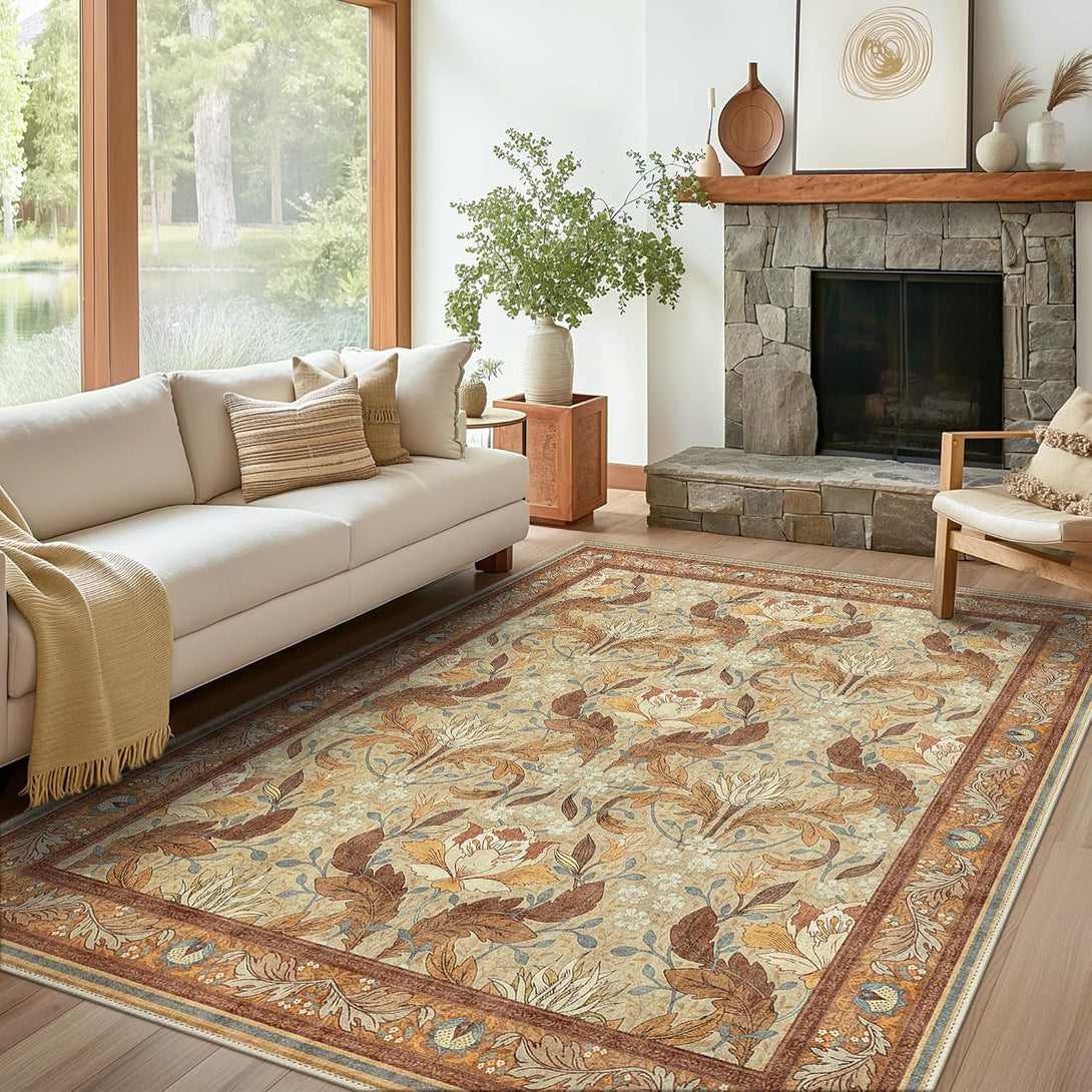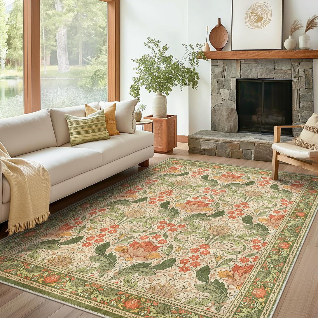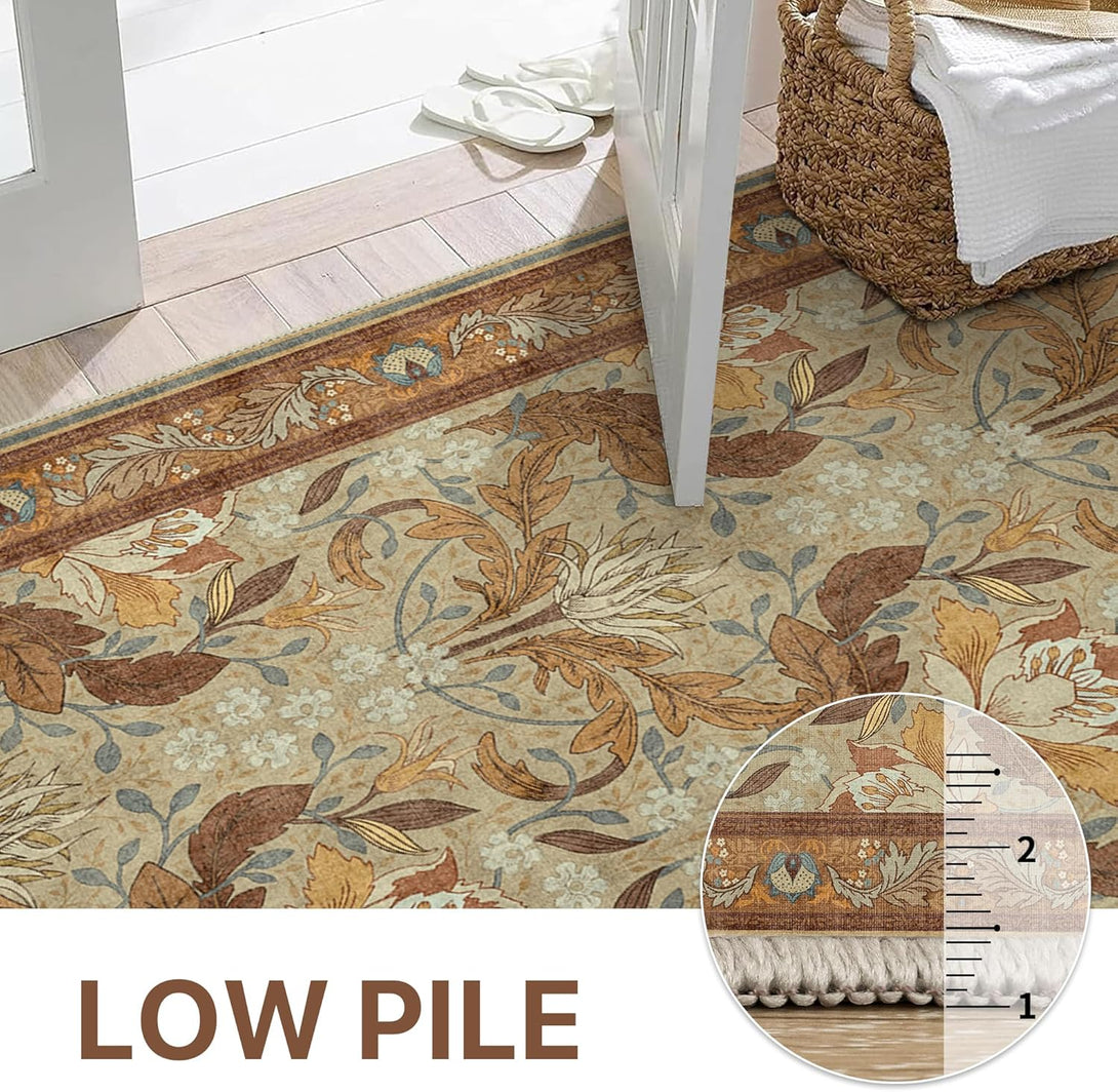 - 【Machine Washable】: This vintage floral rug is machine washable for easy maintenance, ensuring a clean and fresh look with minimal effort. Simply toss it into the washing machine on a gentle cycle with cold water, and it will come out looking fresh and vibrant. Ideal for busy households, it saves you time and energy while keeping your space looking great.