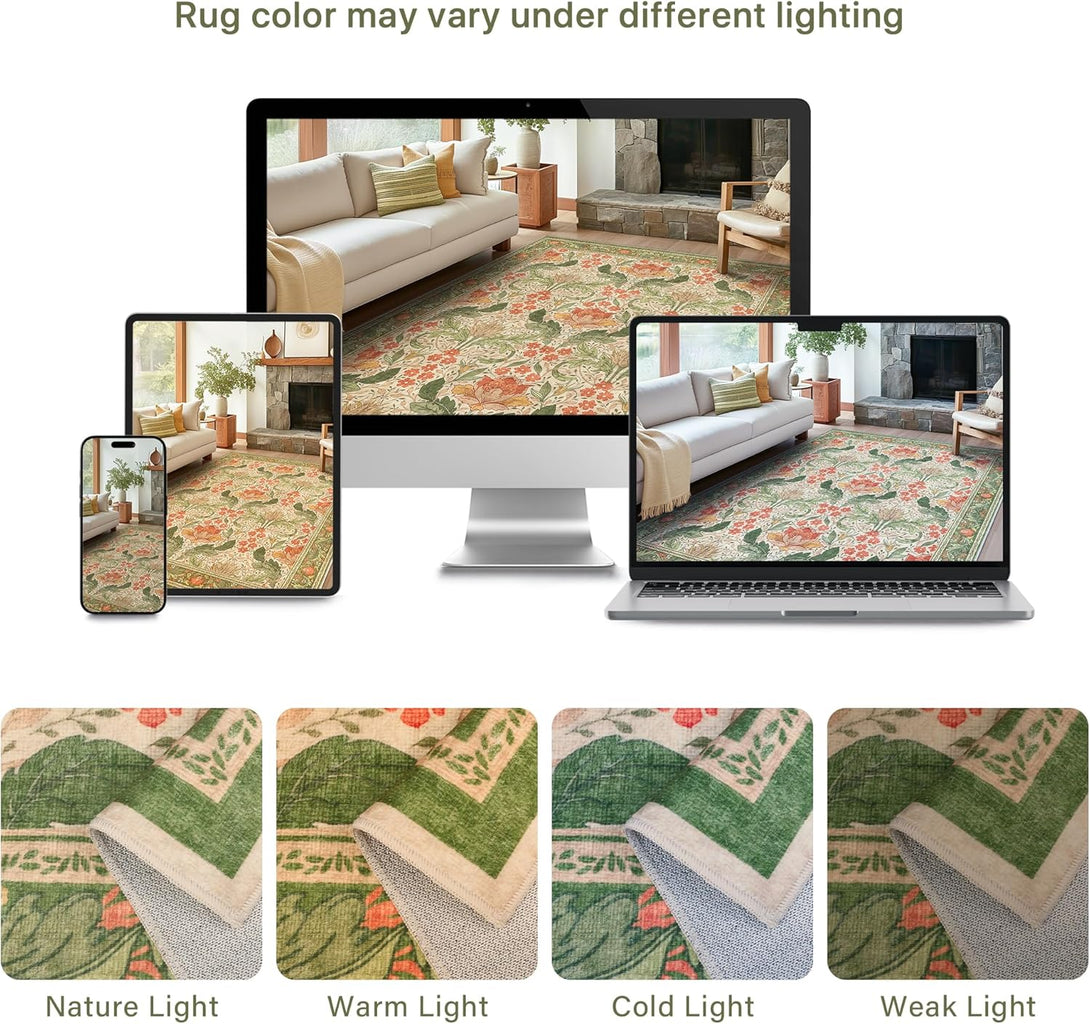 - 【Color Variation Notice】: Color Variation Notice. Please note that due to different screen settings, slight color variations may occur between the image and the actual product. While the colors may appear differently on your screen, the overall aesthetic and design of the rug remain intact.