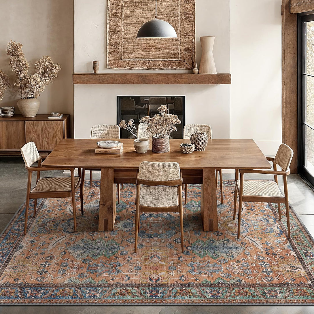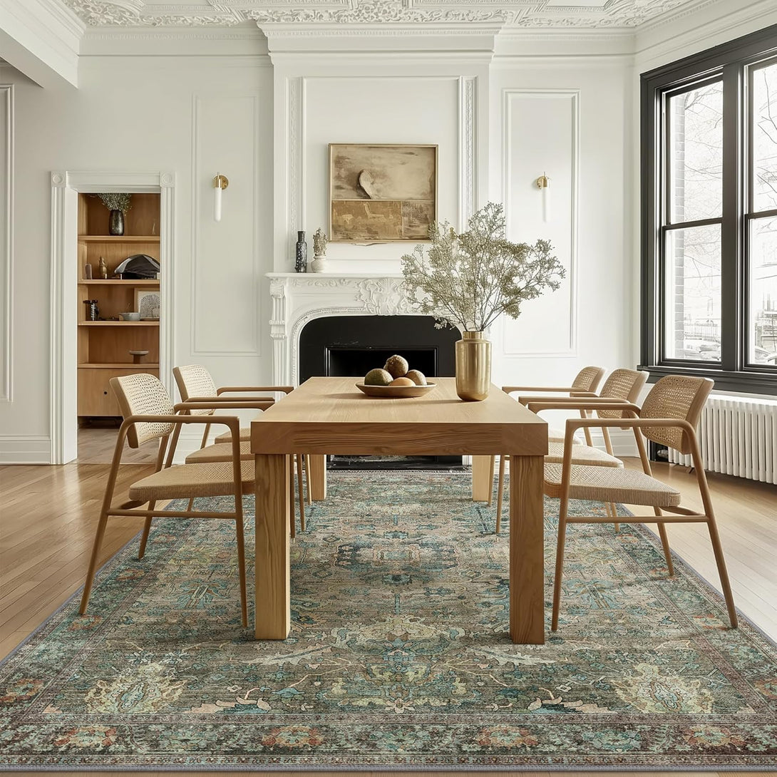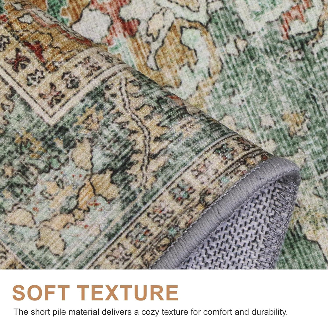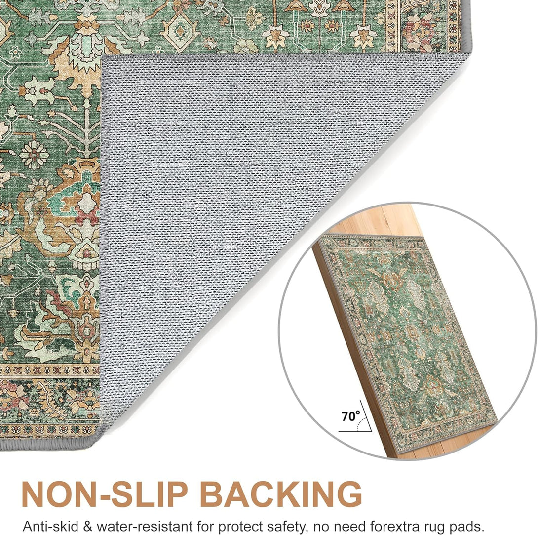 - 【Safety Non-Slip Rug】The ultra-thin vintage rug can be easily placed under dining tables and furniture without becoming a snag or trip hazard. The back features a non-slip rubberized backing that provides excellent friction and helps keep the area rugs in place, so it won't move or slide away, even with heavy foot traffic.