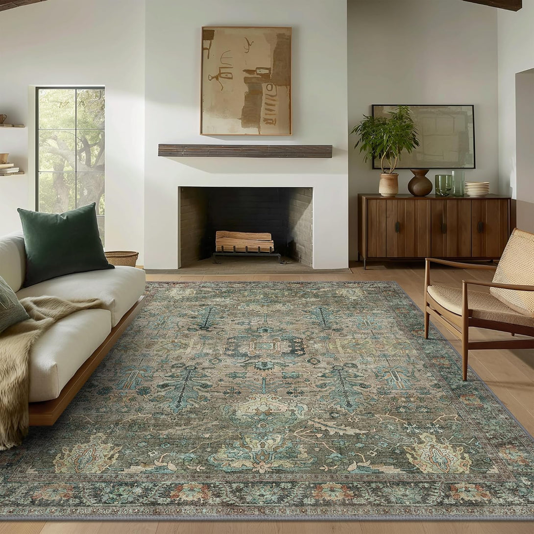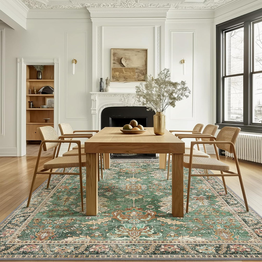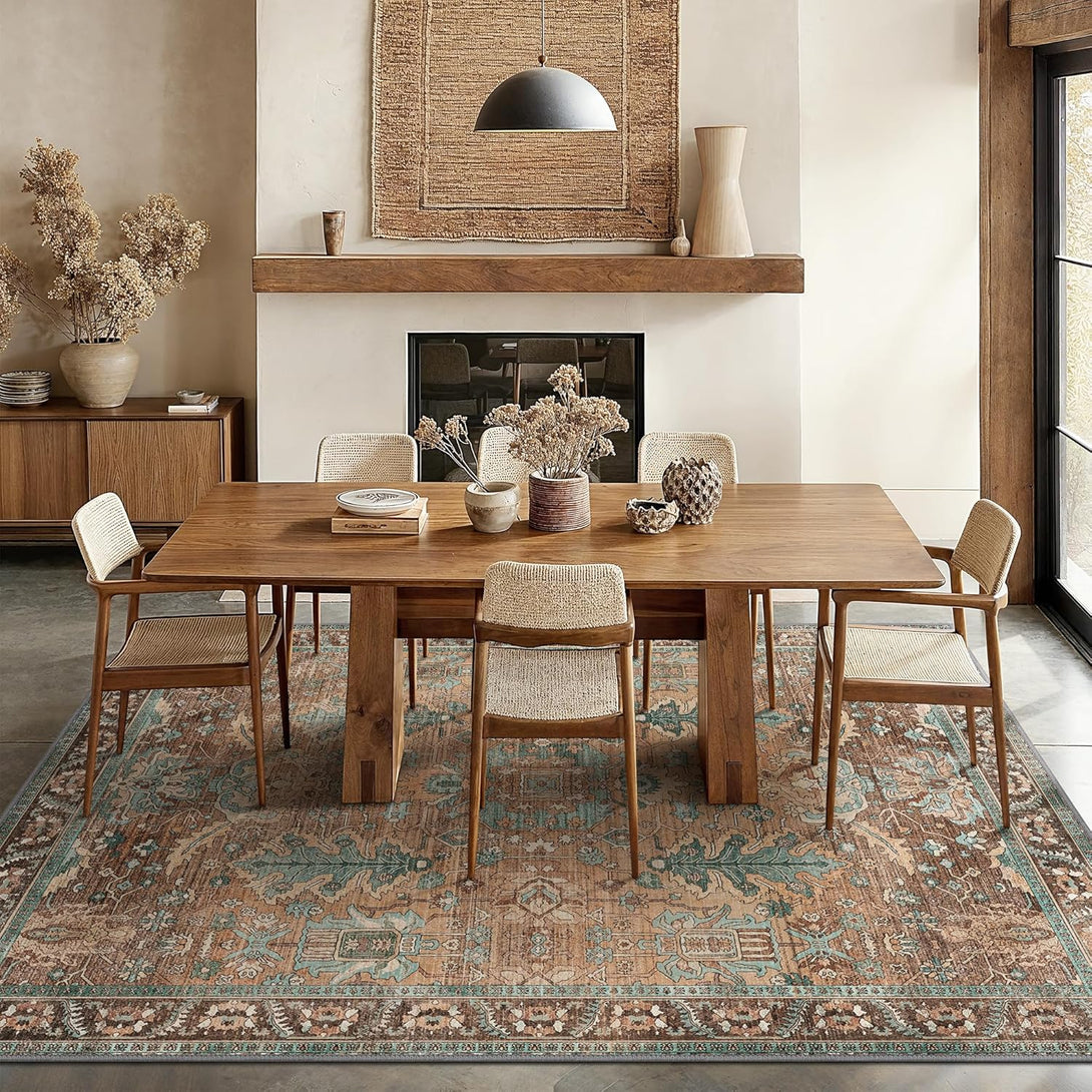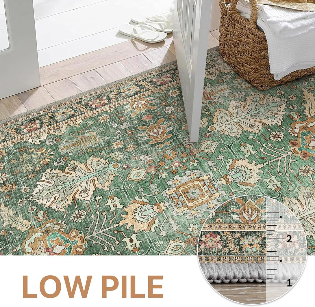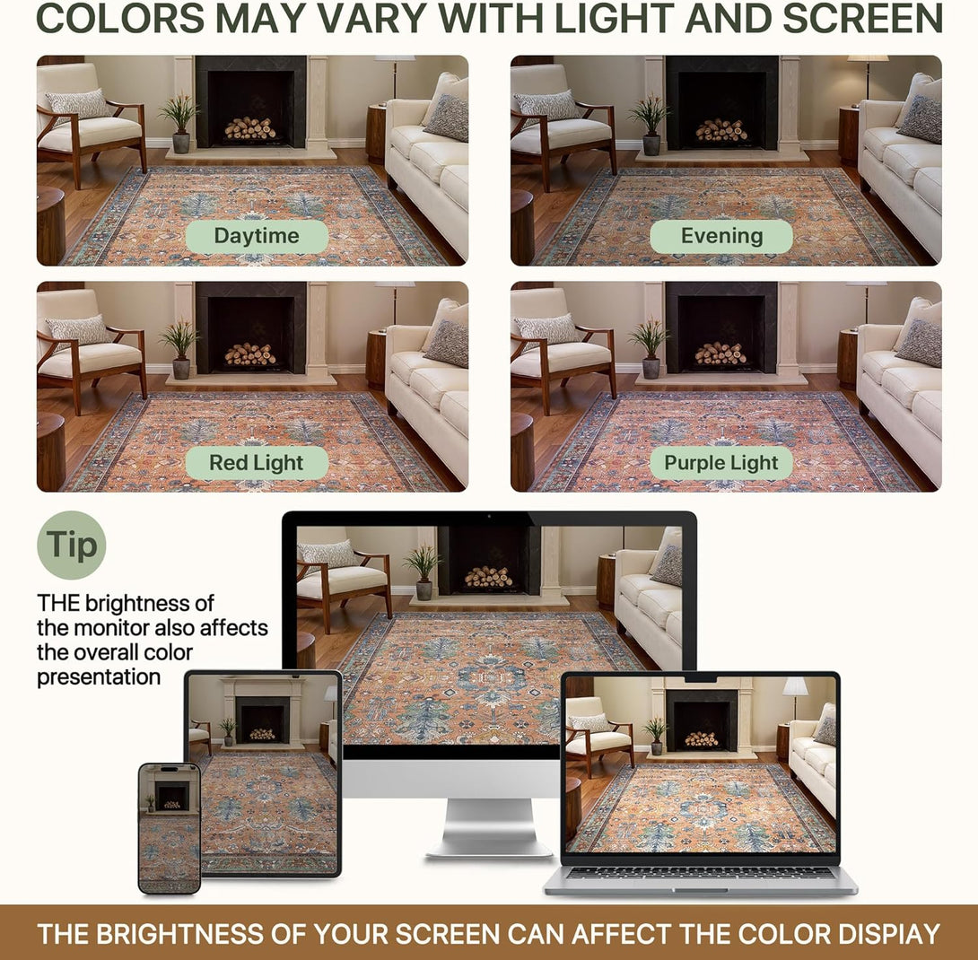 - 【Safety Non-Slip Rug】The ultra-thin vintage rug can be easily placed under dining tables and furniture without becoming a snag or trip hazard. The back features a non-slip rubberized backing that provides excellent friction and helps keep the area rugs in place, so it won't move or slide away, even with heavy foot traffic.