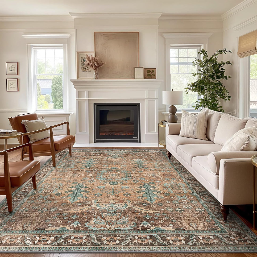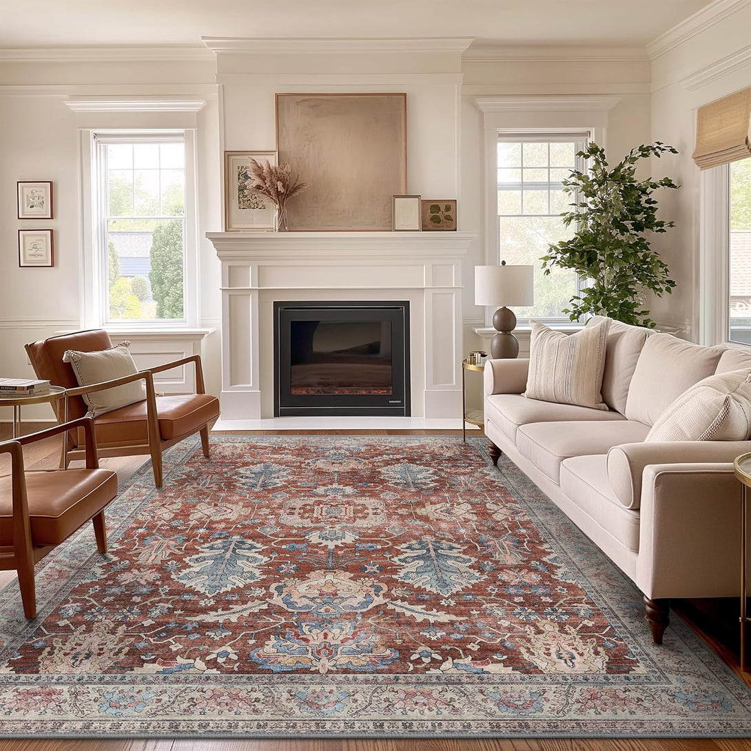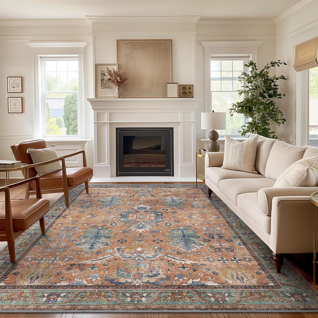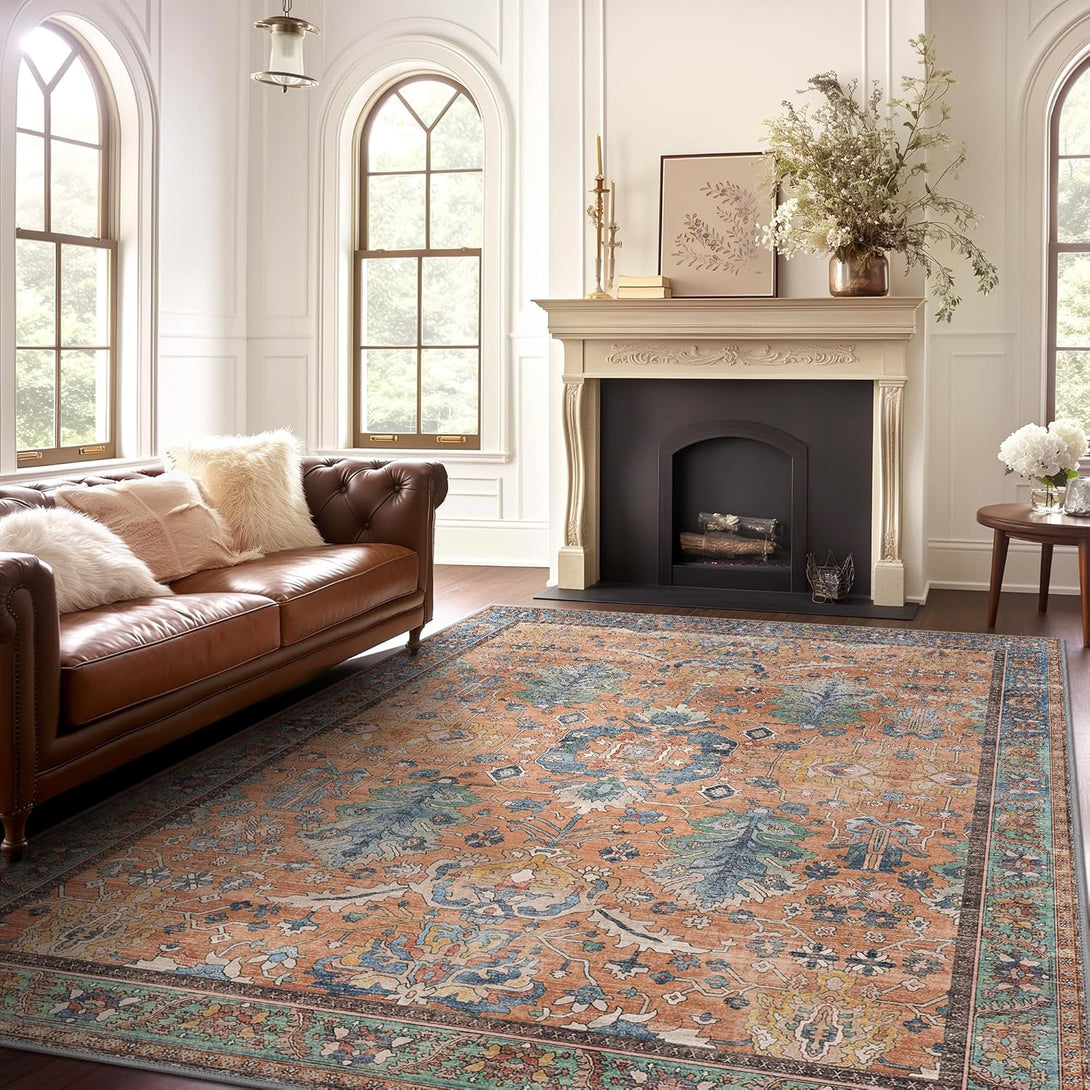 - 【Safety Non-Slip Rug】The ultra-thin vintage rug can be easily placed under dining tables and furniture without becoming a snag or trip hazard. The back features a non-slip rubberized backing that provides excellent friction and helps keep the area rugs in place, so it won't move or slide away, even with heavy foot traffic.