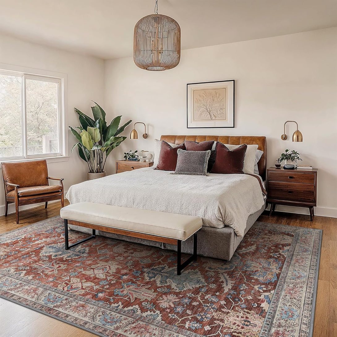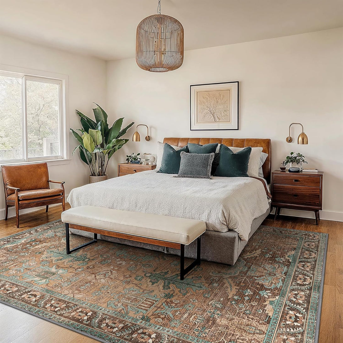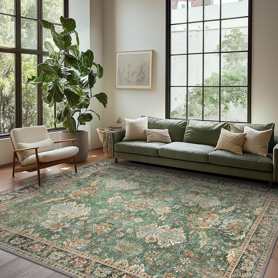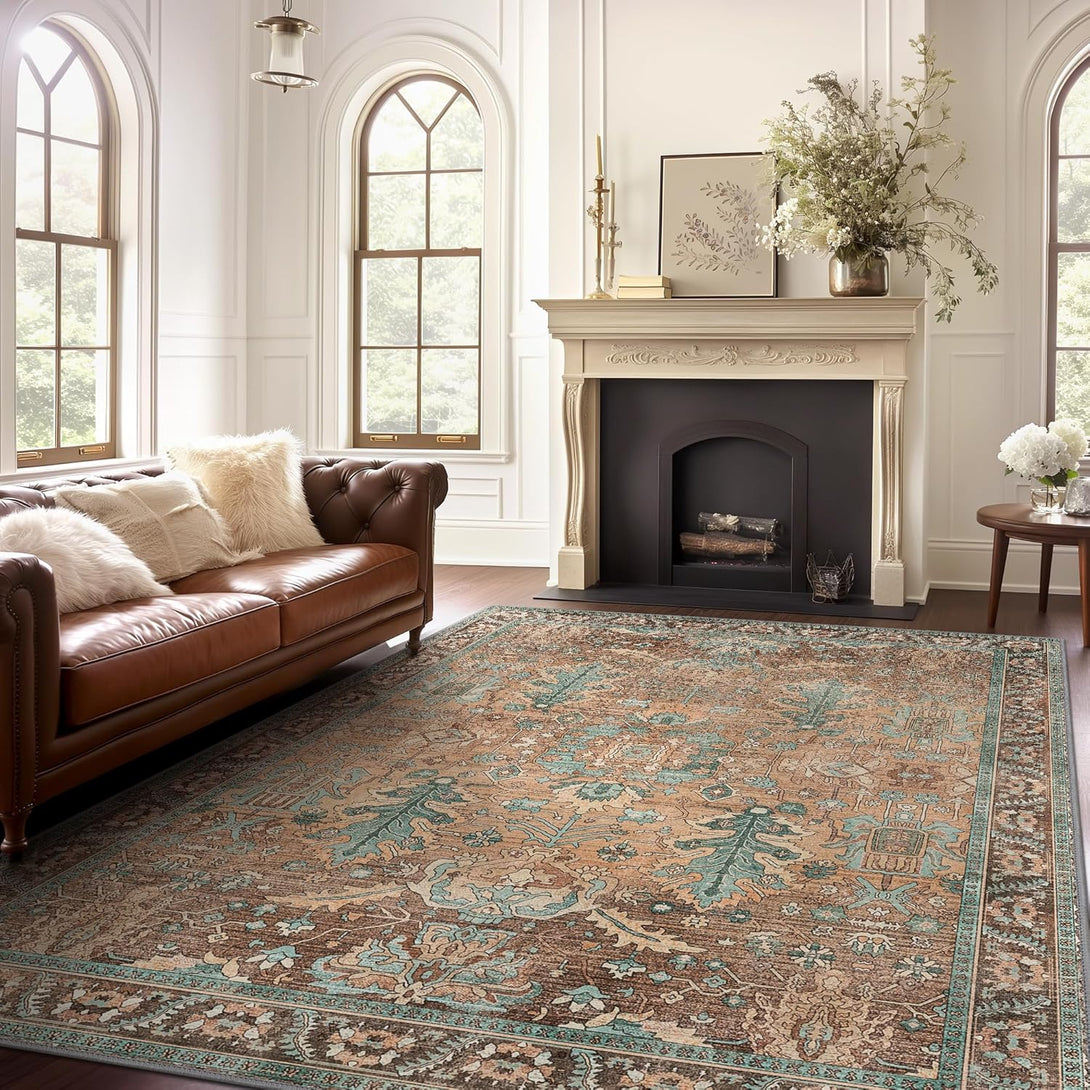 - 【Safety Non-Slip Rug】The ultra-thin vintage rug can be easily placed under dining tables and furniture without becoming a snag or trip hazard. The back features a non-slip rubberized backing that provides excellent friction and helps keep the area rugs in place, so it won't move or slide away, even with heavy foot traffic.