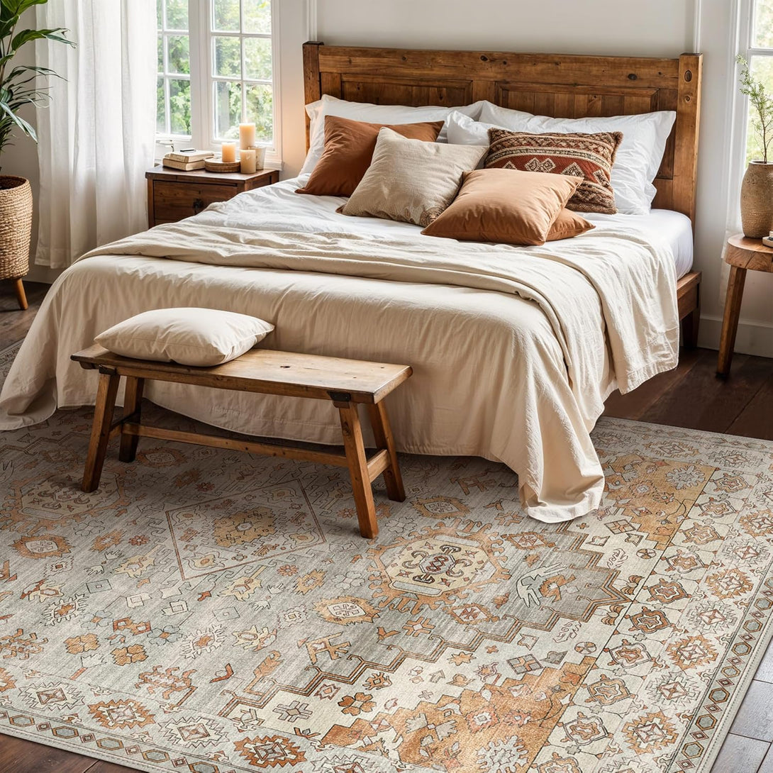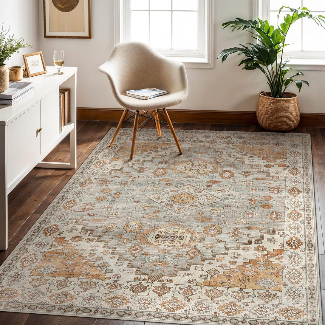 Most genimorug rugs are machine washable (large rugs fit best in 5.5 cu ft or larger machines). Pre-clean dust and stains, wash in cold water on a gentle cycle with mild detergent, then air-dry or tumble-dry on low heat.