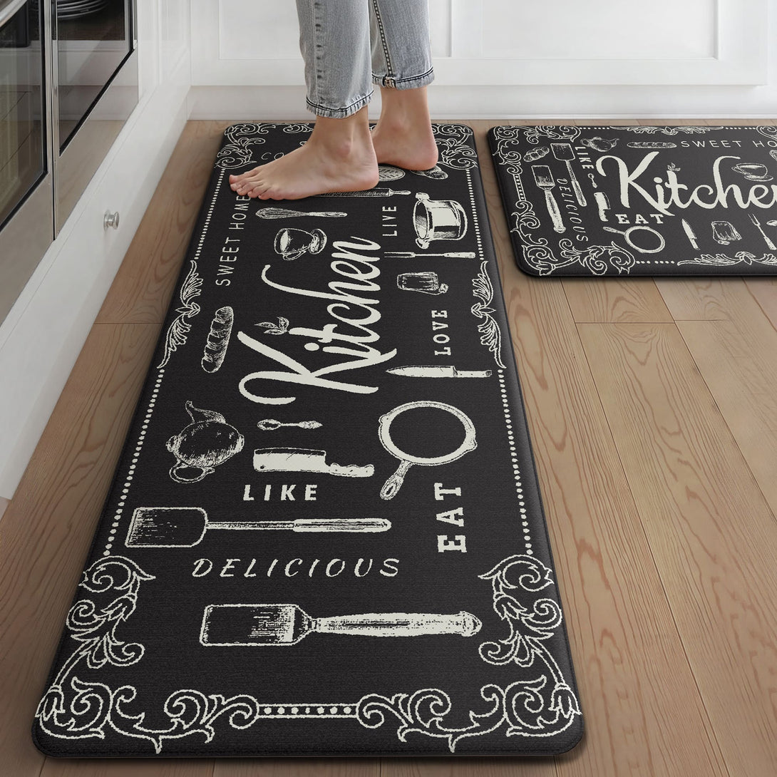 GENINO 2PCS Cushioned Anti Fatigue Runner Rugs Non Slip Washable Kitchen Mats for Floor