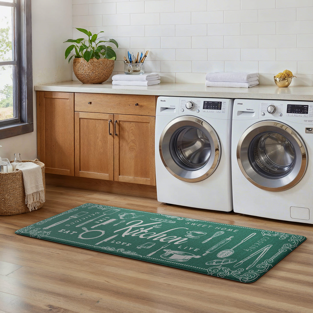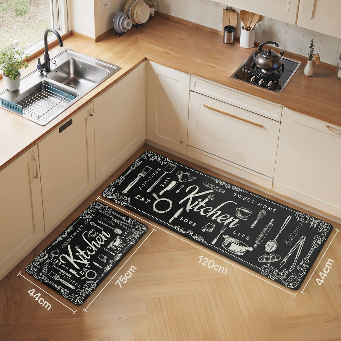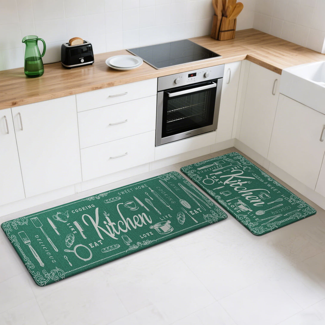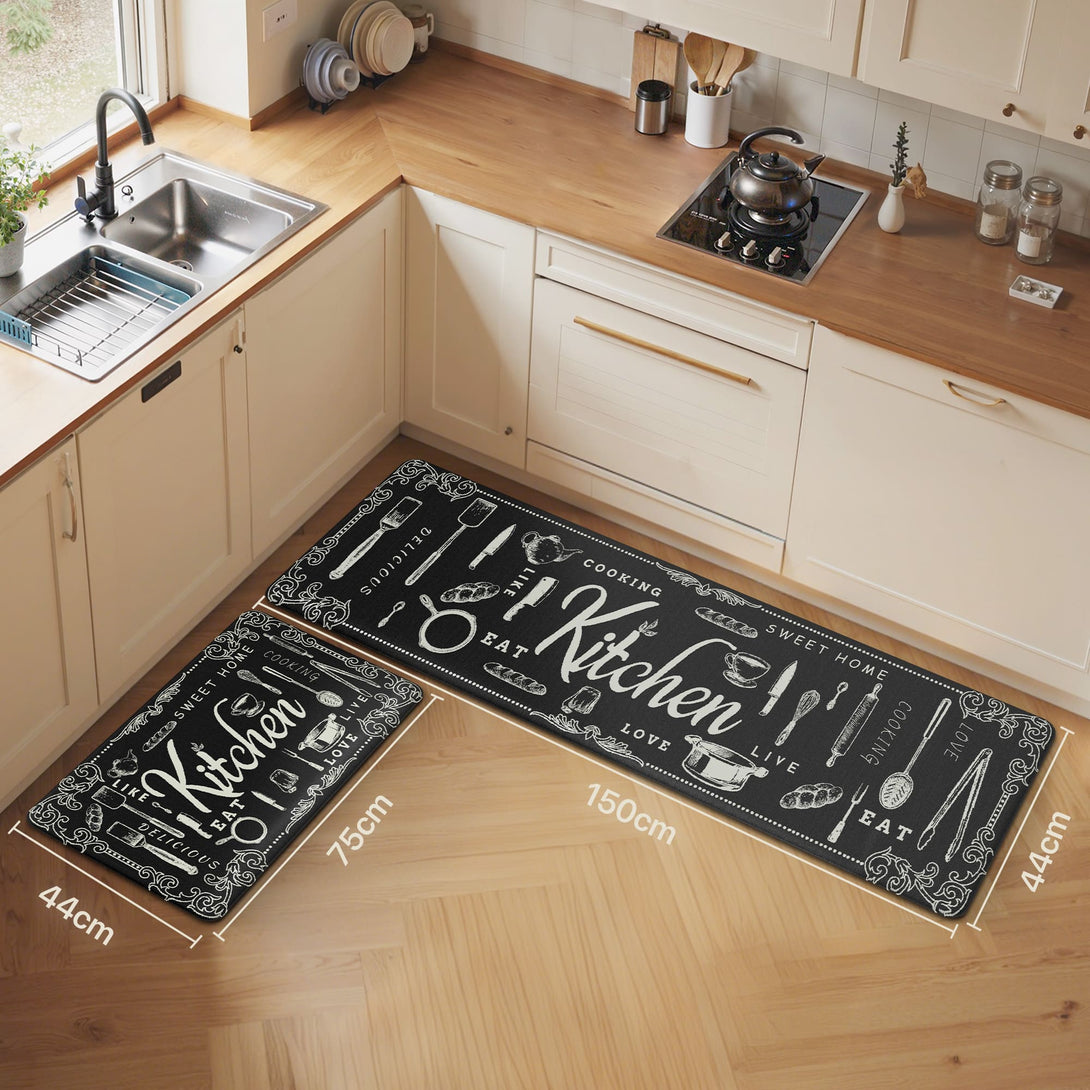 - Kitchen Rules Designed: Elevate your kitchen and home decor with this eye-catching functional mat. Features classic "Kitchen Rules" lettering and utensil patterns (pots, pans, spatulas) for thematic charm. Combines personality with utility – essential kitchen decor and accessories that upgrade any cooking space
