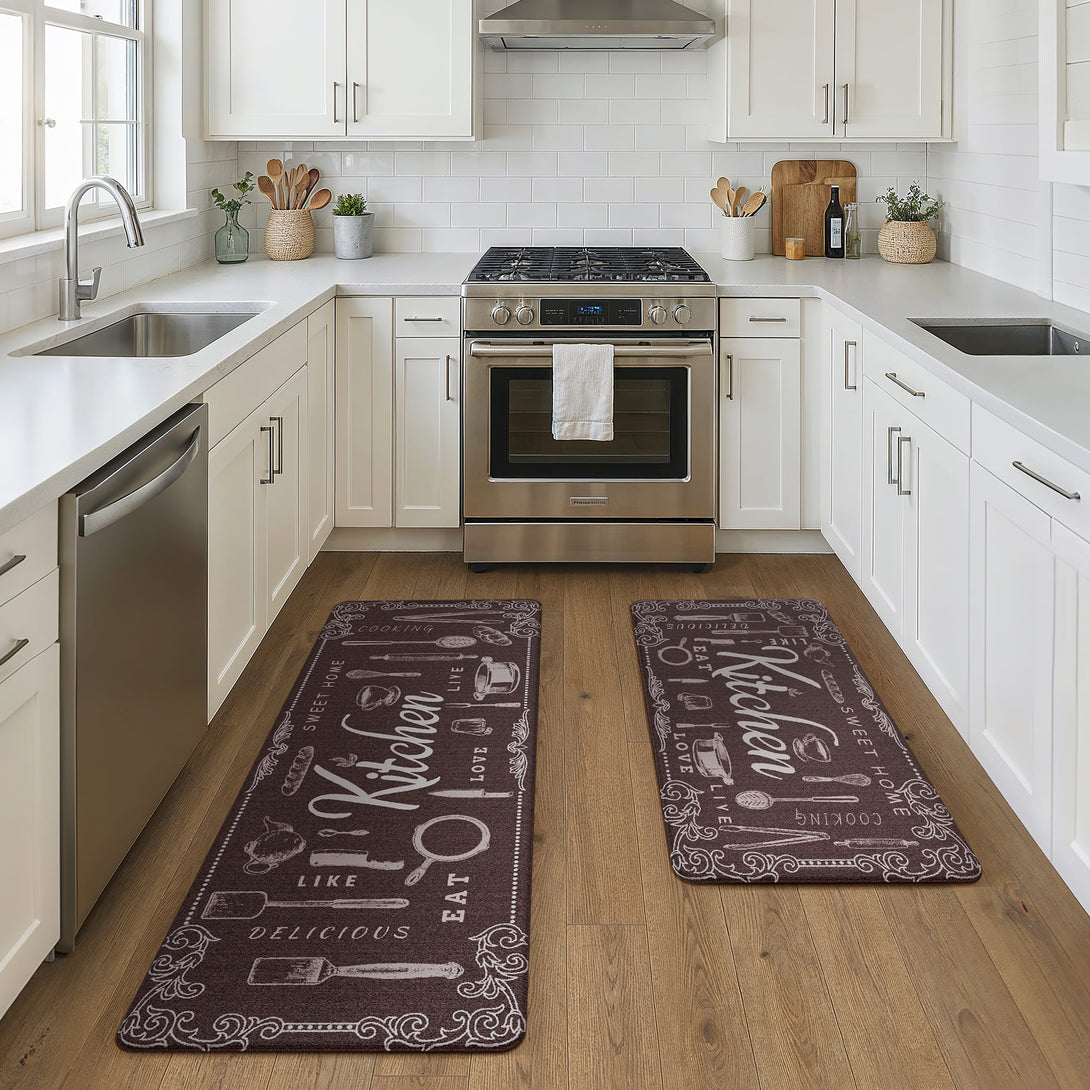 - Waterproof & Oil-proof: Protect your house or apartment decor floors! Our kitchen rug's smooth PVC surface repels water, oil, and spills instantly. Textured top enhances grip while reinforced edges lie flat. Wipe away messes effortlessly – no stains, no residue. A vital home essential for spill-prone zones