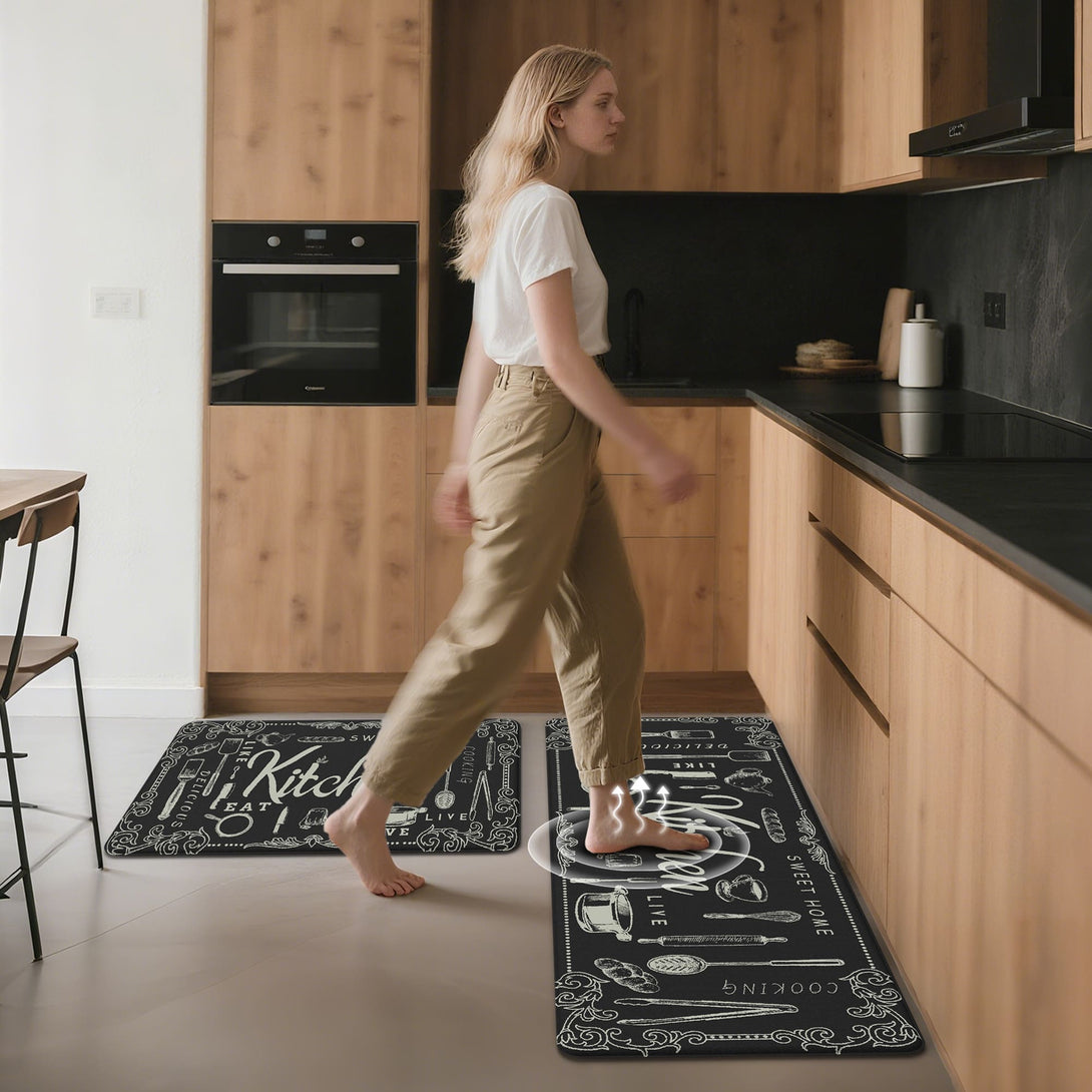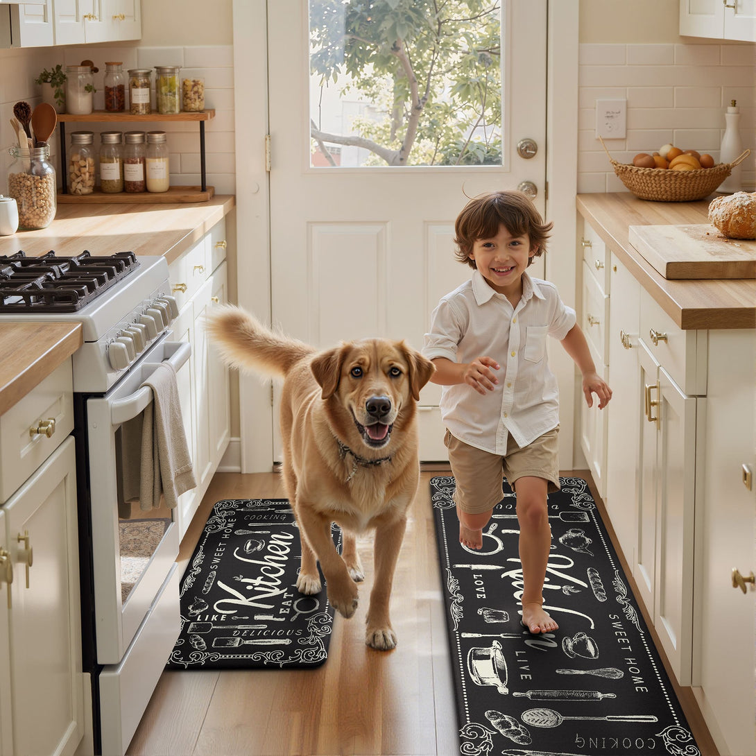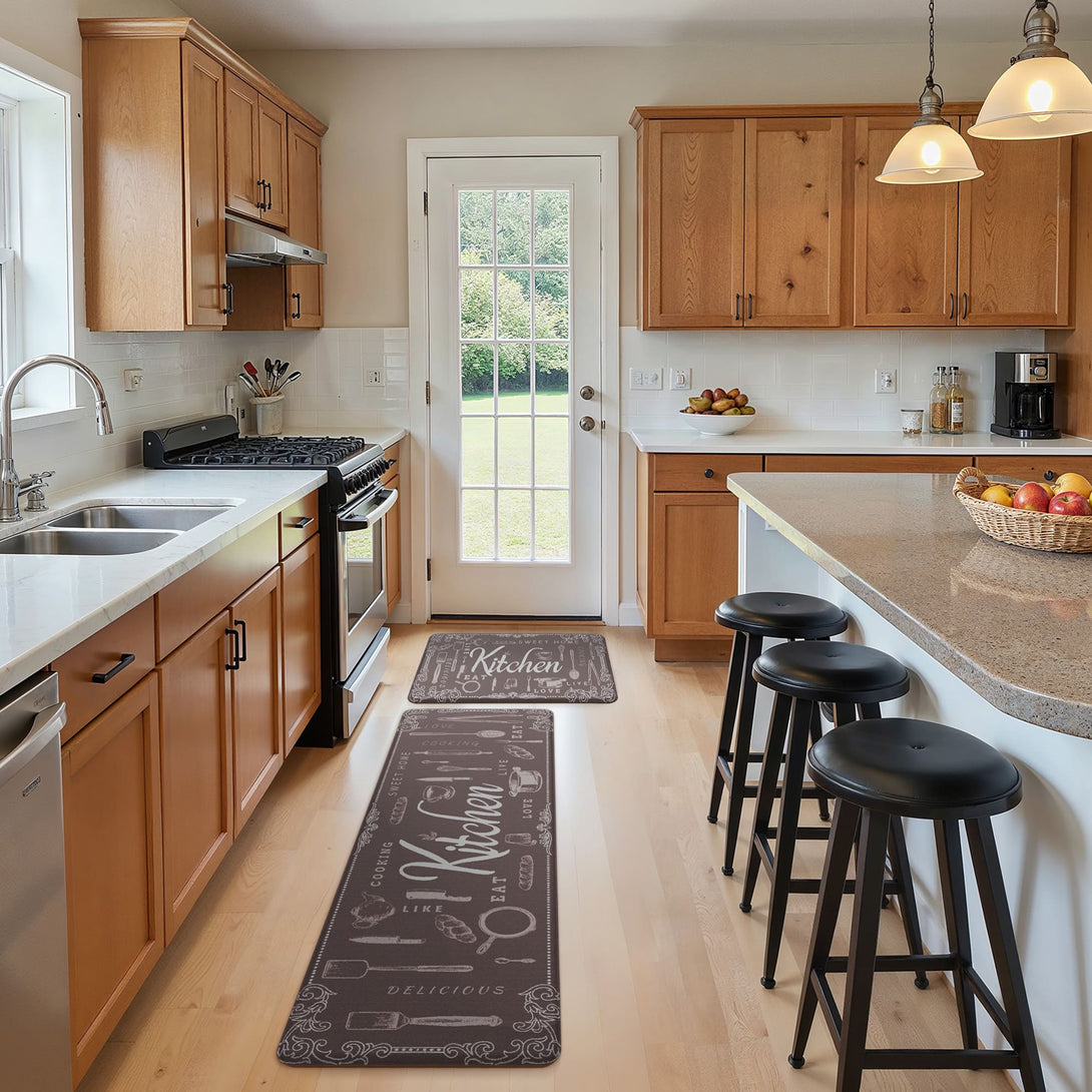 - Easy-Clean & Non-Slip: GENIMO's waterproof kitchen mat provides cushioned support with effortless maintenance. Just wipe with a damp cloth or rinse clean. Featuring durable non-slip backing, this kitchen carpet withstands daily use while staying securely in place. The ultimate low-maintenance kitchen accessories for busy households