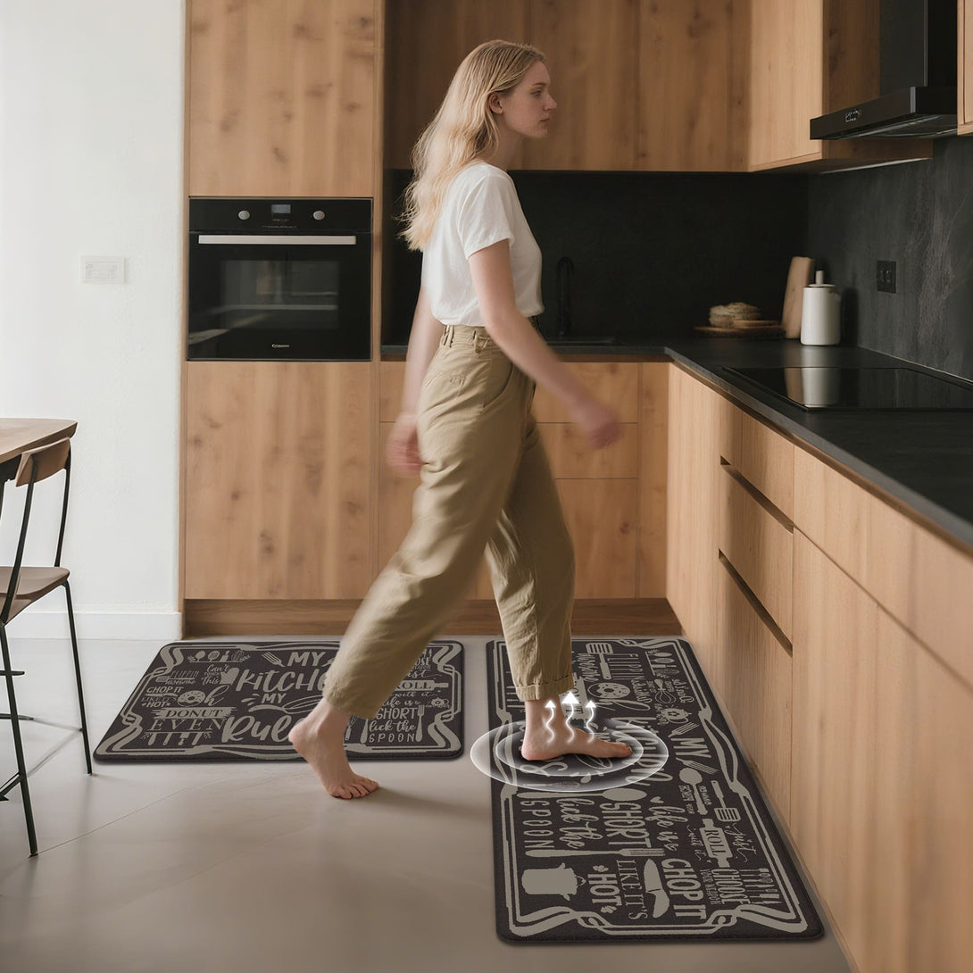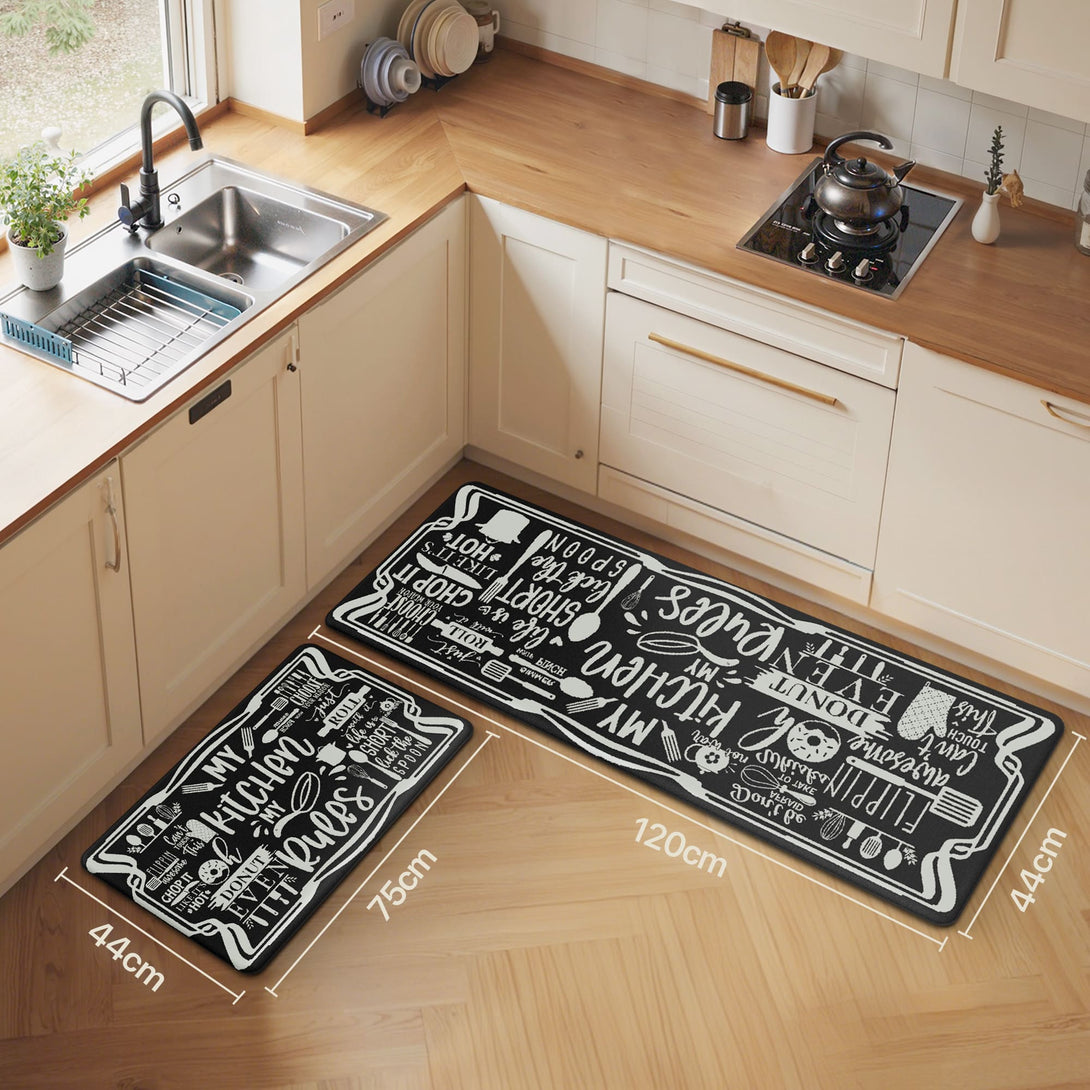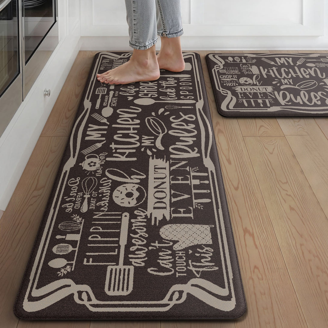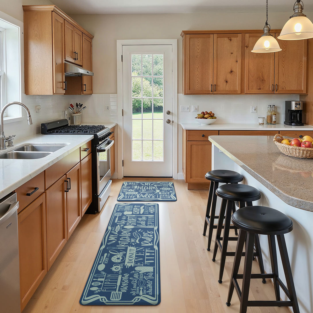 - Kitchen Rules Designed: Elevate your kitchen and home decor with this eye-catching functional mat. Features classic "Kitchen Rules" lettering and utensil patterns (pots, pans, spatulas) for thematic charm. Combines personality with utility – essential kitchen decor and accessories that upgrade any cooking space