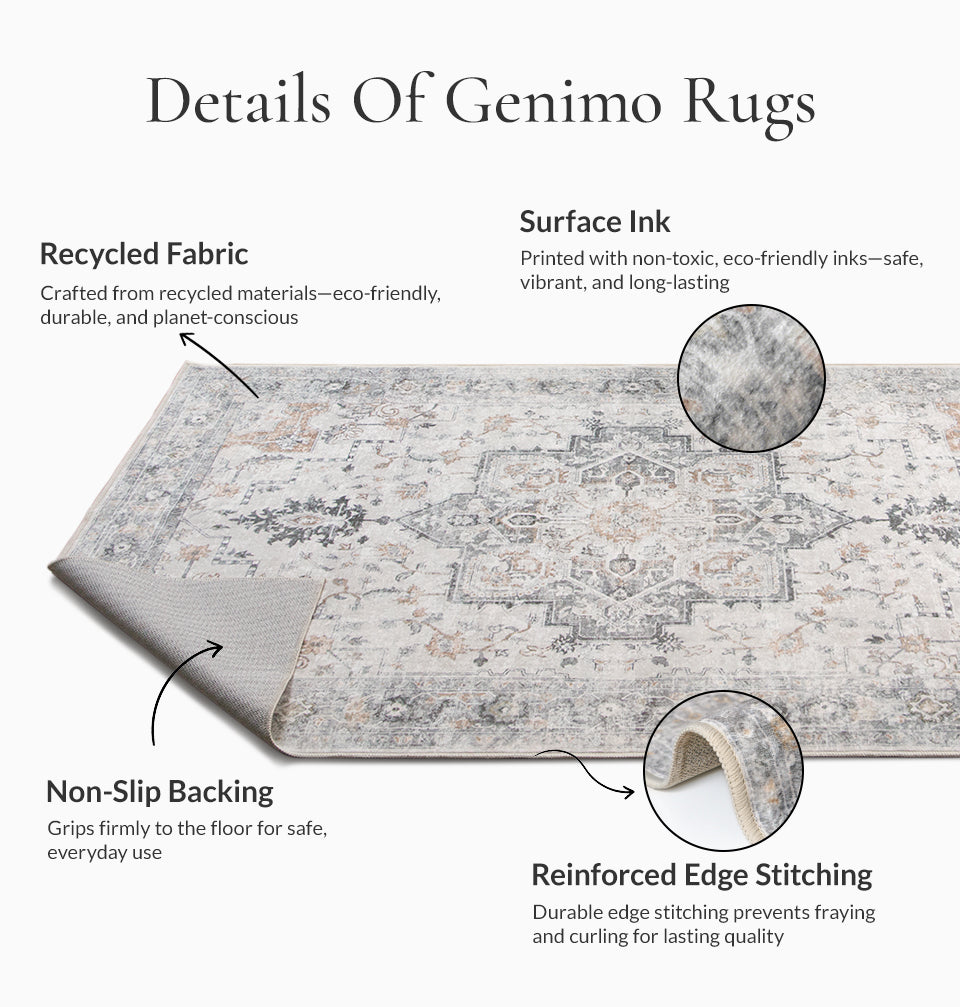 All GENIMO rugs are fully machine washable, making everyday care effortless.