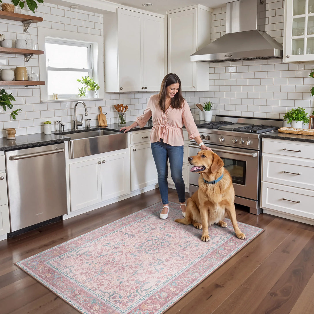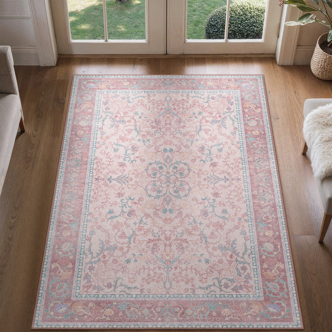 Elevate your space with GENIMO Mirae Washable Vintage Maximalism Floral Rug. Featuring OEKO-TEX certification, this rug ensures safety and eco-friendliness. Its ultra-soft touch offers exceptional comfort underfoot, while the non-slip backing keeps it securely in place. Easy to wash and maintain, it combines sweet, vintage floral style with practical durability—making it the perfect blend of beauty and function for any room.