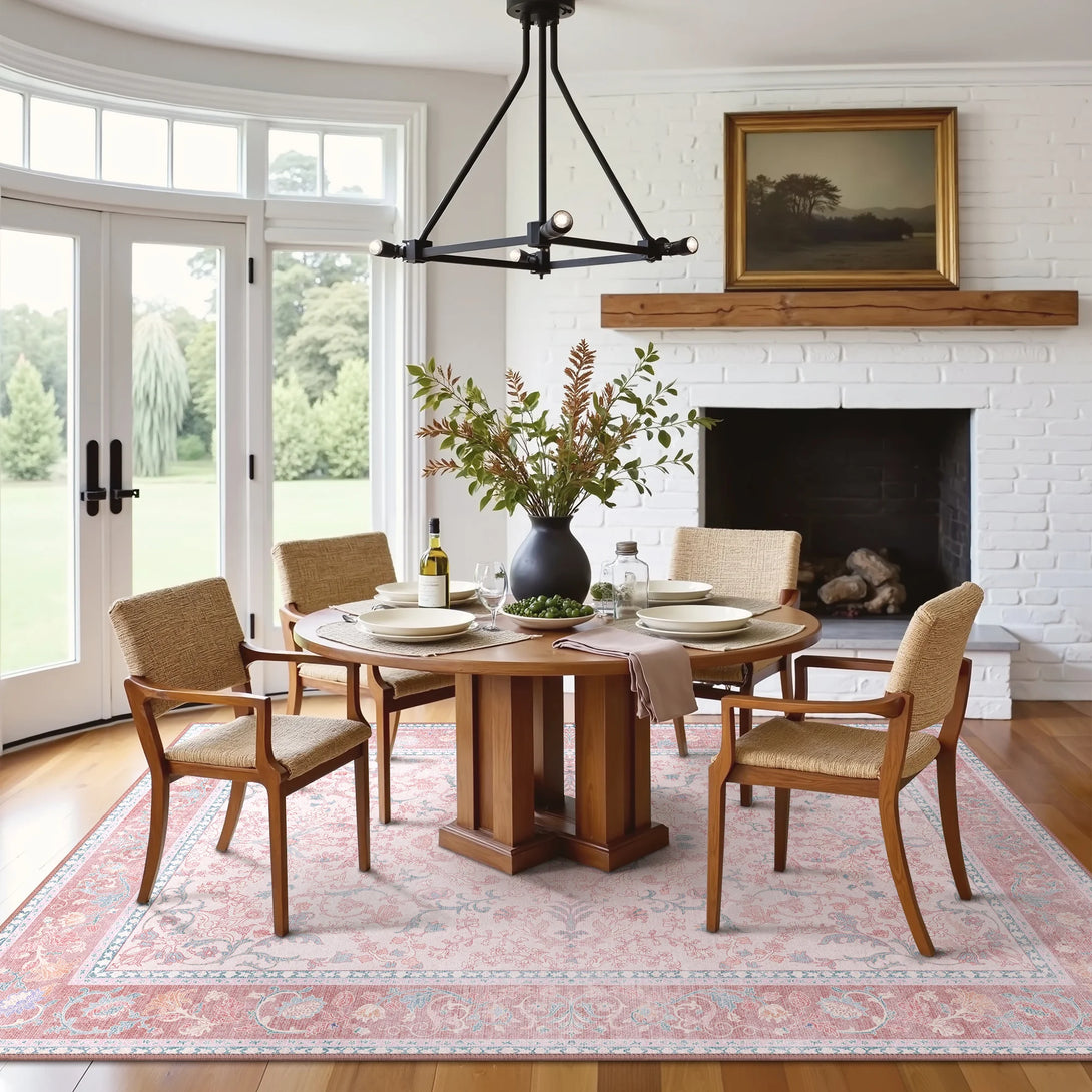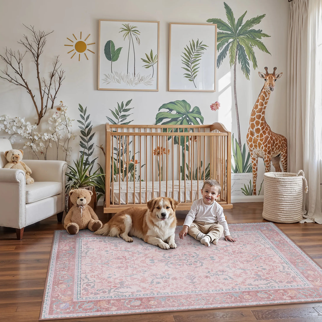 Built-in non-slip backing keeps the rug stable and safe, whether kids are running or pets are playing, even when chairs slide across it.