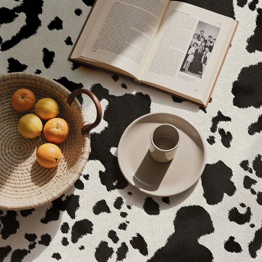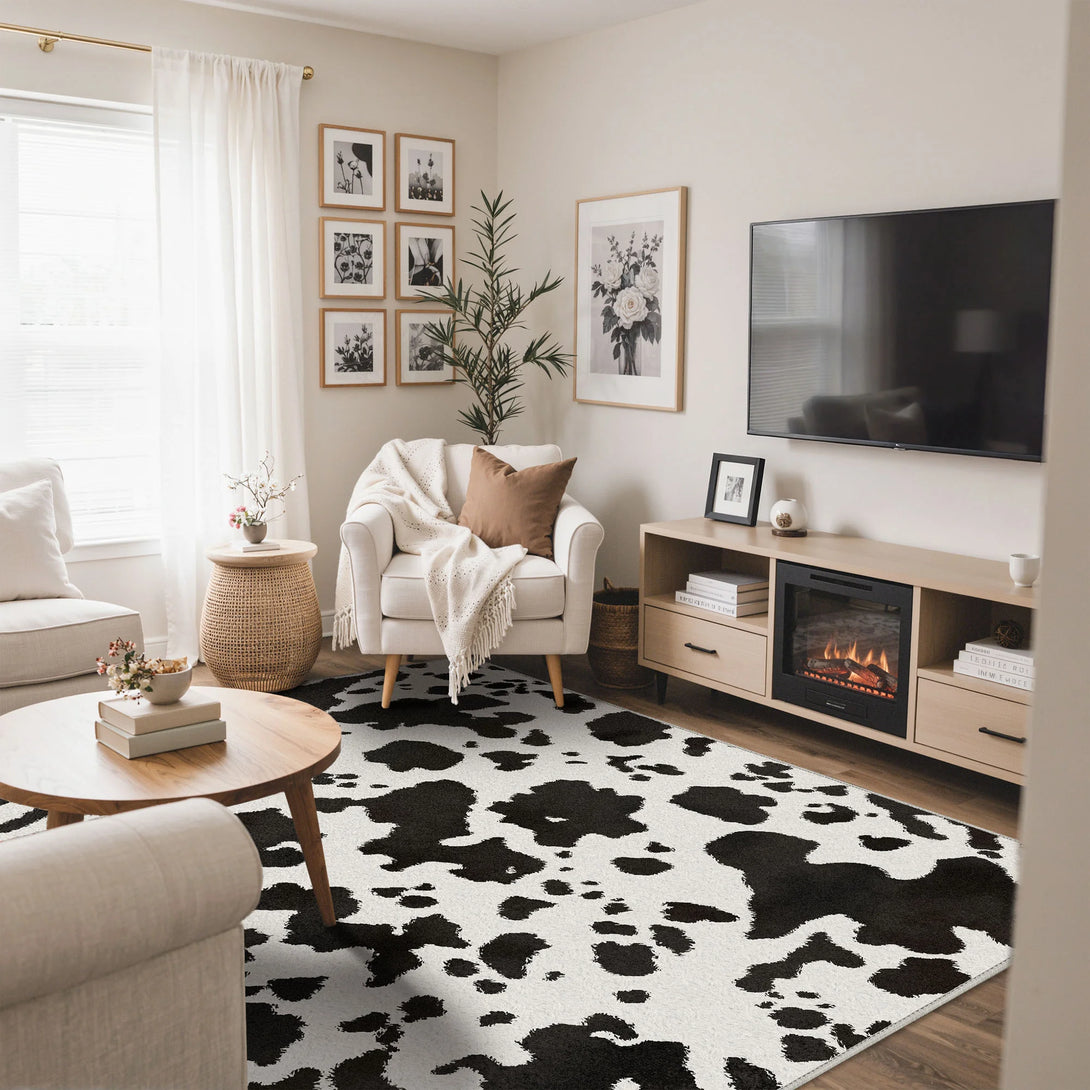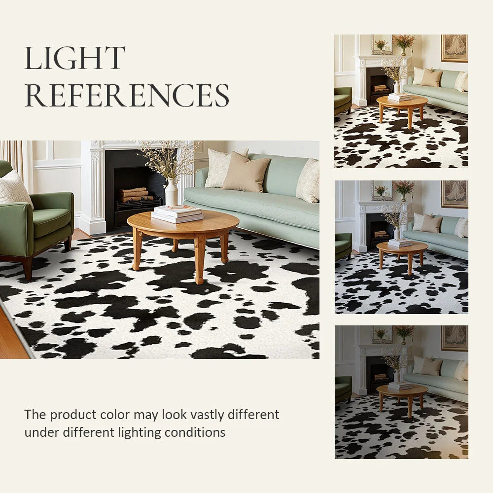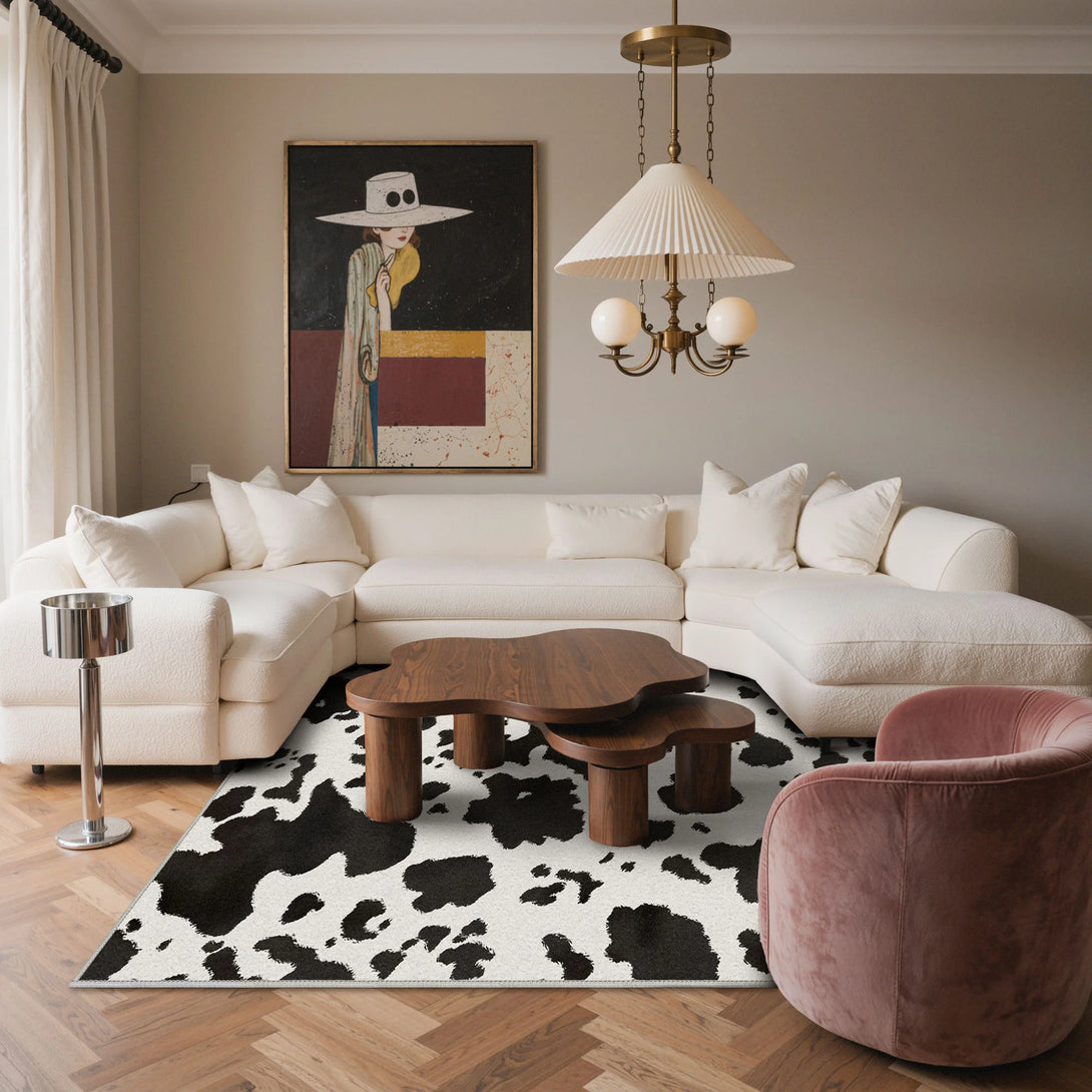 Bring farmhouse charm into your home with the Nava Washable Modern Farmhouse Cow Print Rug. This on-trend design features a striking cow print pattern that adds personality and warmth to any room. Crafted with a luxuriously soft touch, it's gentle underfoot while remaining durable enough for high-traffic areas. The washable construction makes cleanup effortless—simply toss it in the machine when needed. Perfect for creating a cozy, rustic aesthetic that feels both welcoming and easy to maintain.
