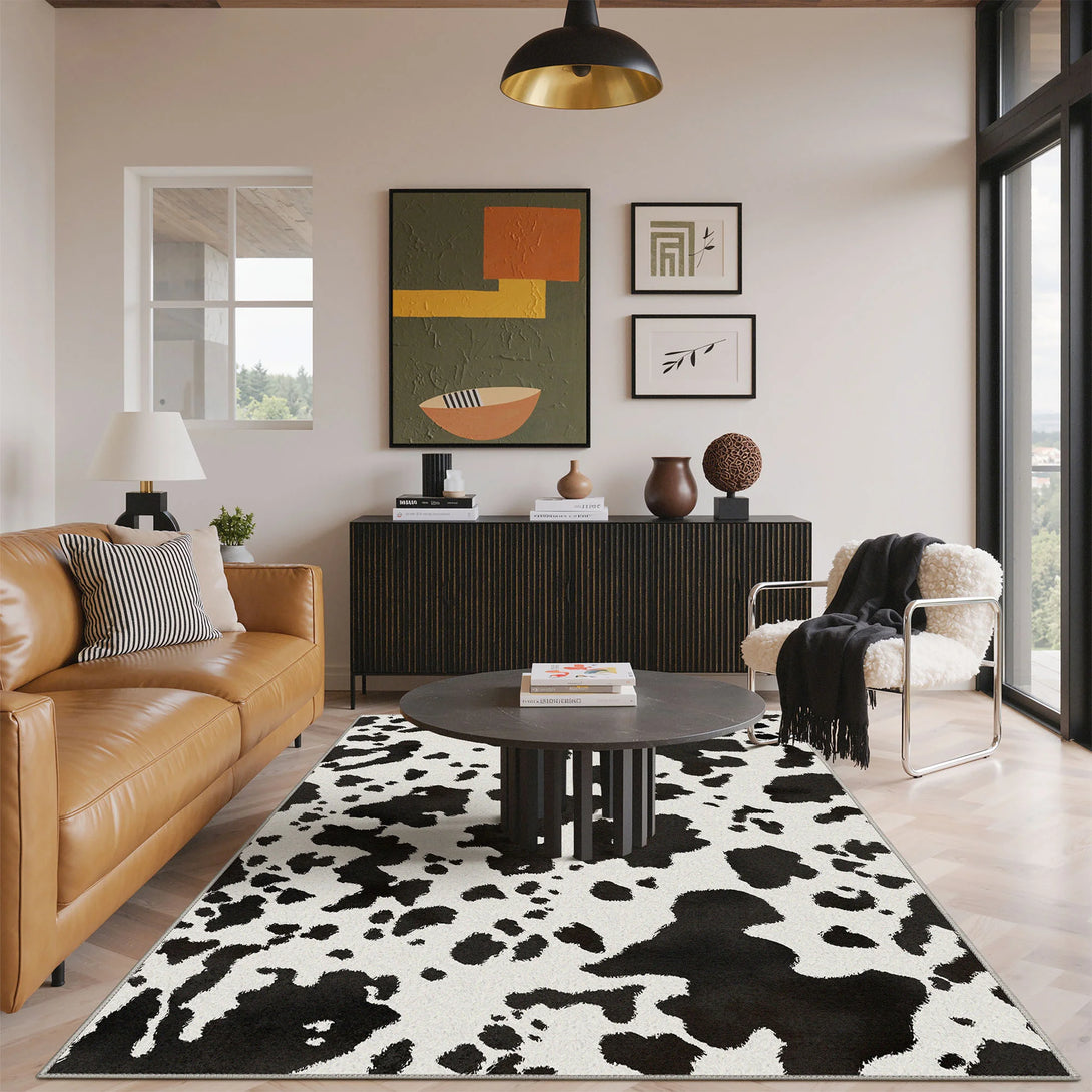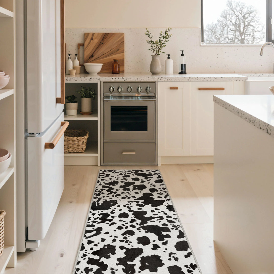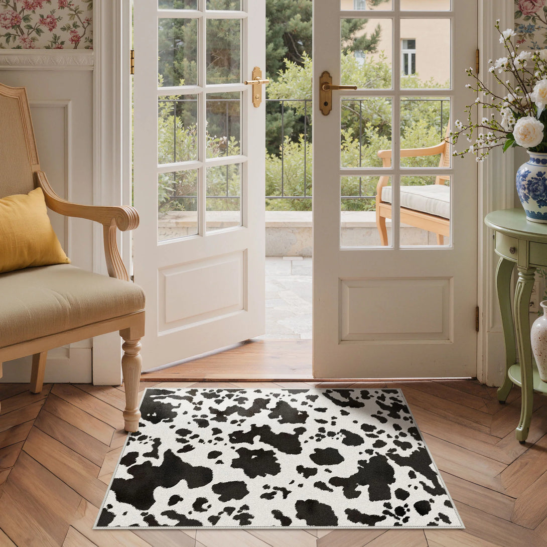 Nava Washable Morden Farmhouse Cow Print Rug– Machine Washable, Pet Friendly & Spill Resistant