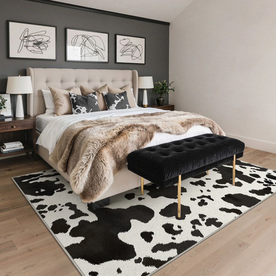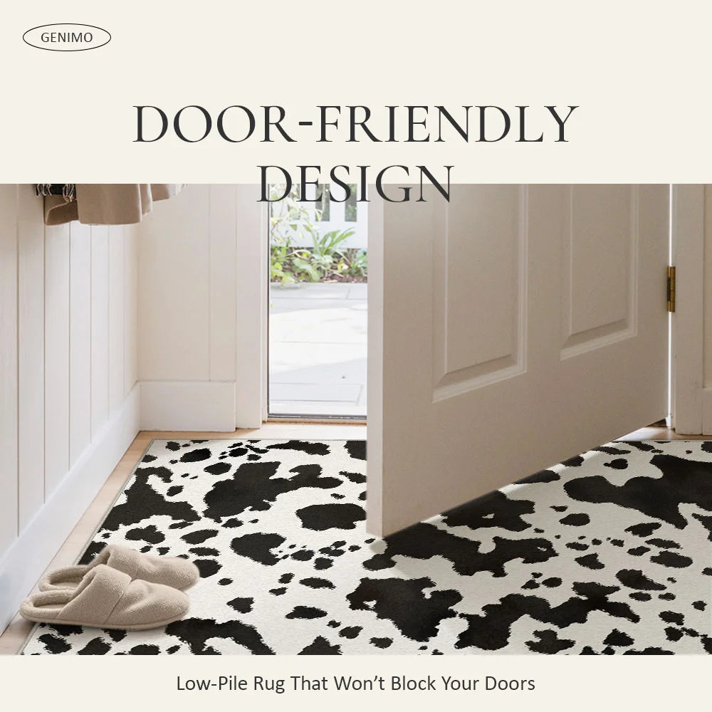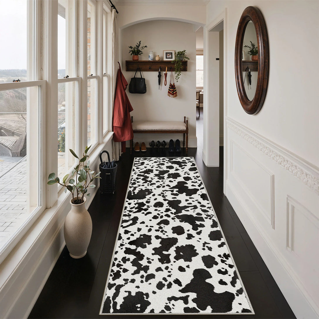 Nava Washable Morden Farmhouse Cow Print Rug– Machine Washable, Pet Friendly & Spill Resistant