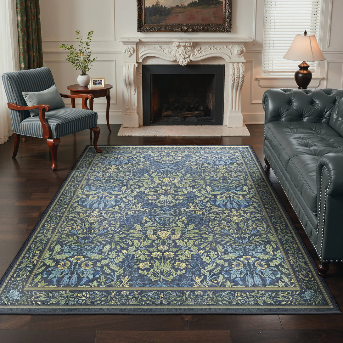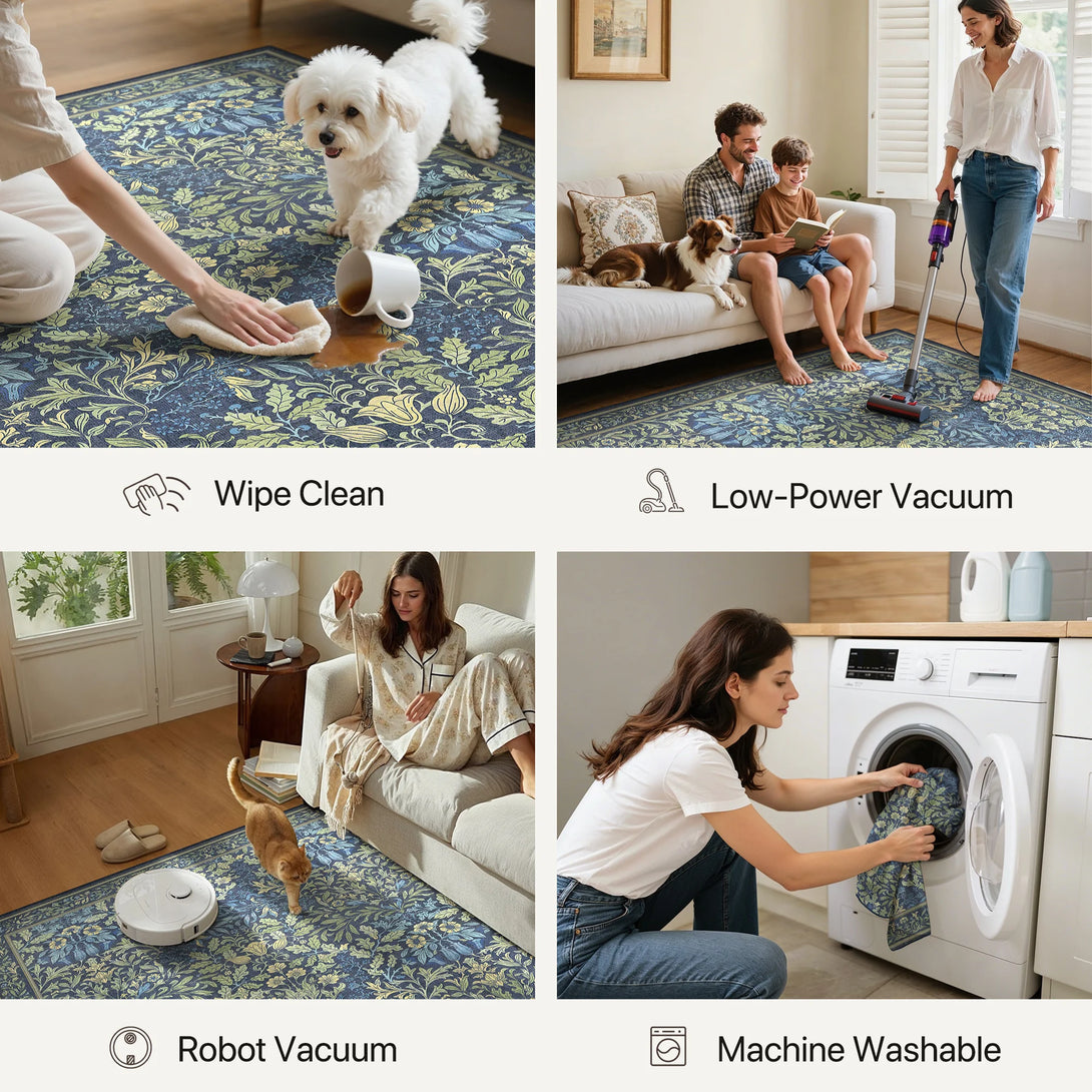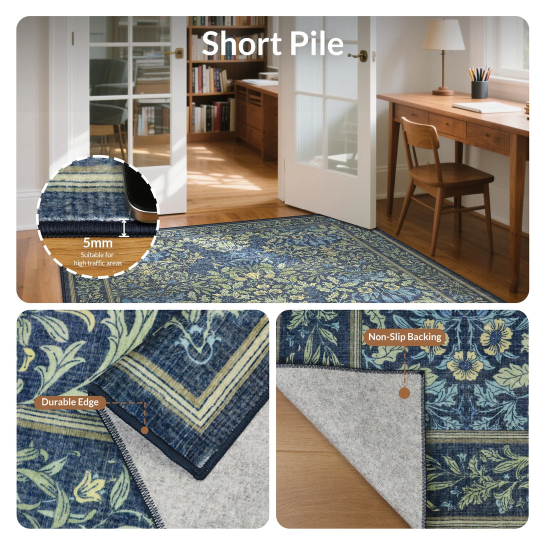 Runa Washable Vintage Floral Print Rugs – Machine Washable, Pet Friendly & Spill Resistant