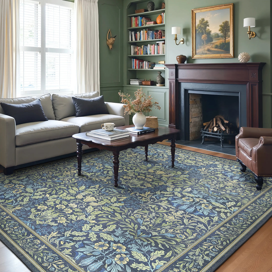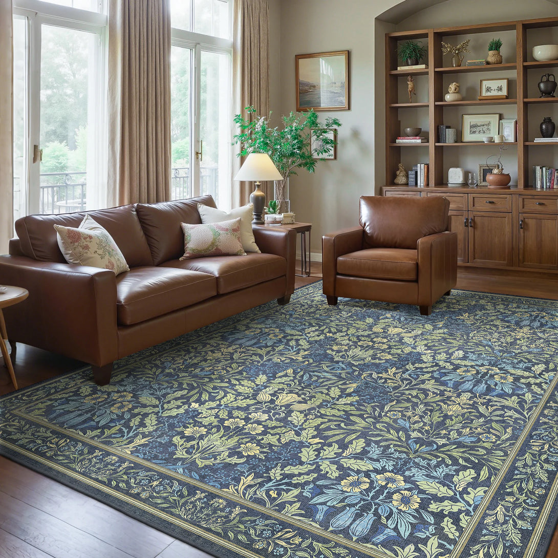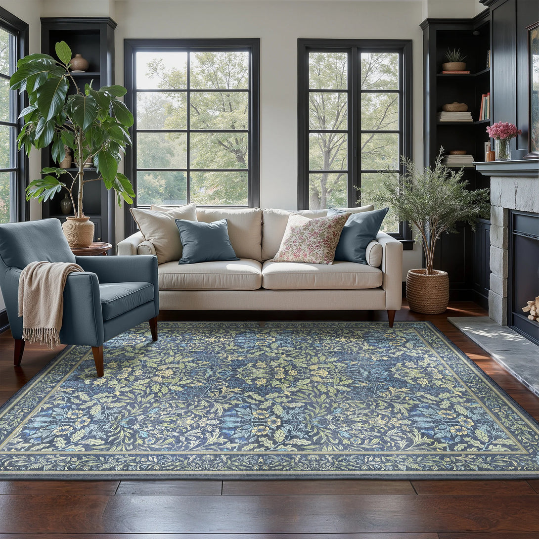 Runa Washable Vintage Floral Print Rugs – Machine Washable, Pet Friendly & Spill Resistant
