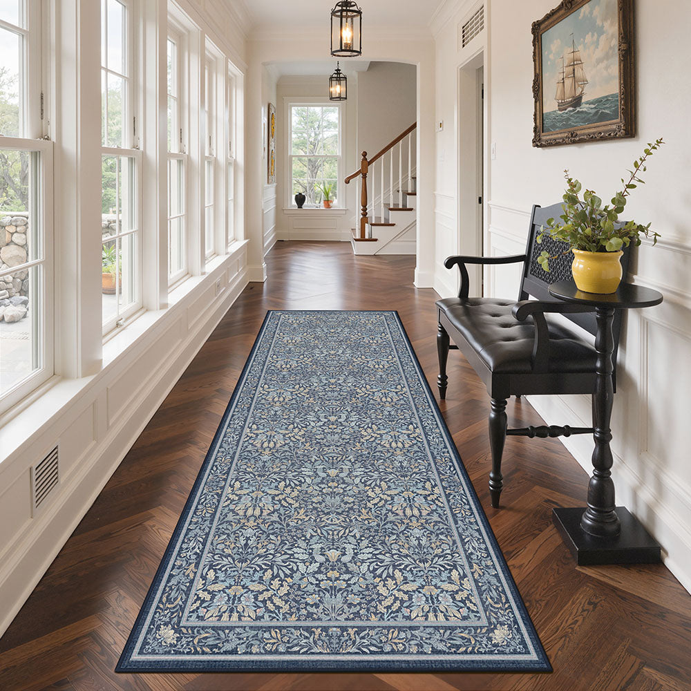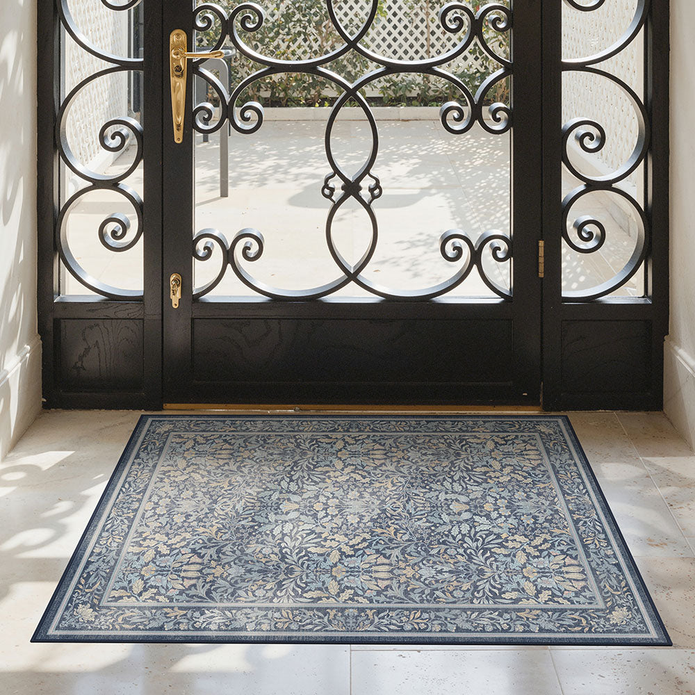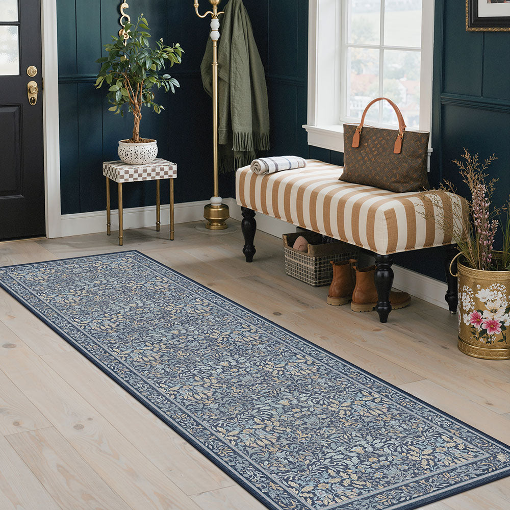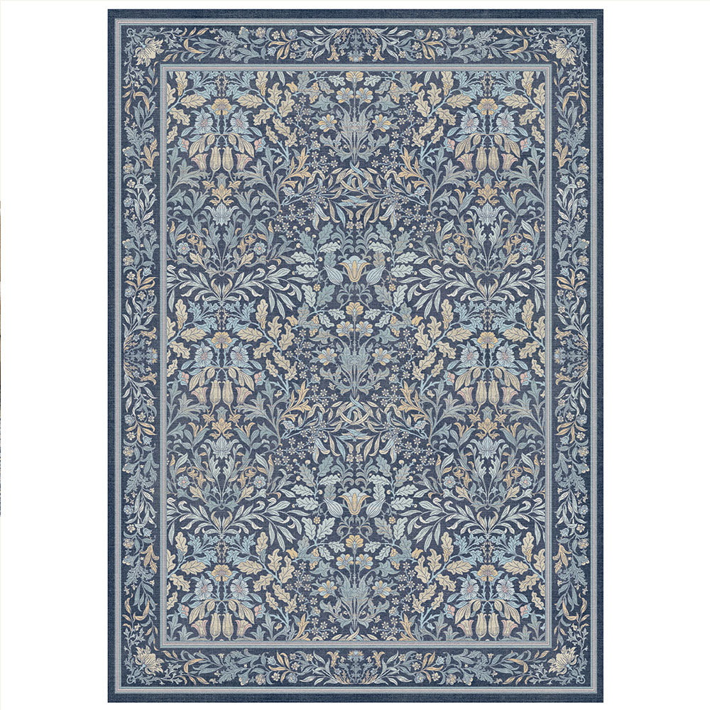 Runa Washable Vintage Floral Print Blue Rugs