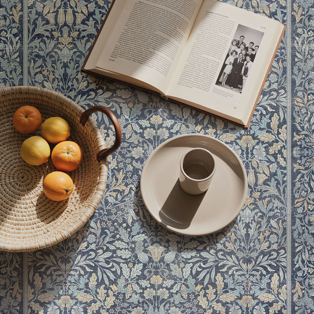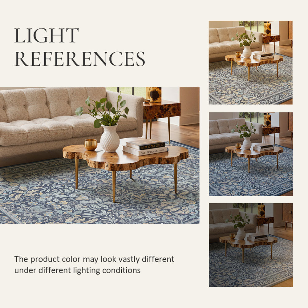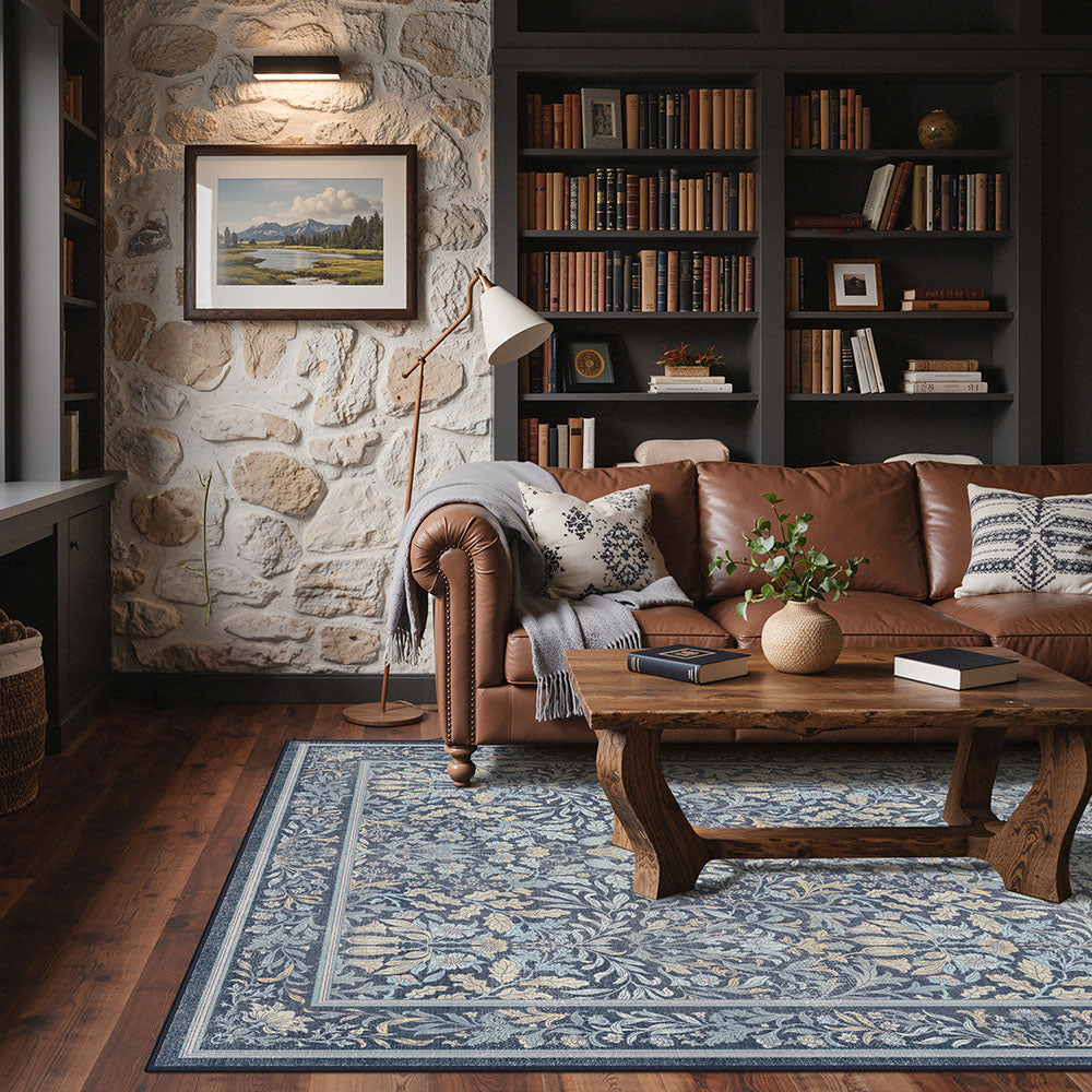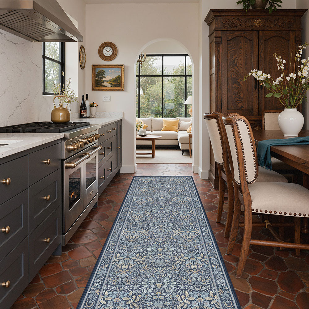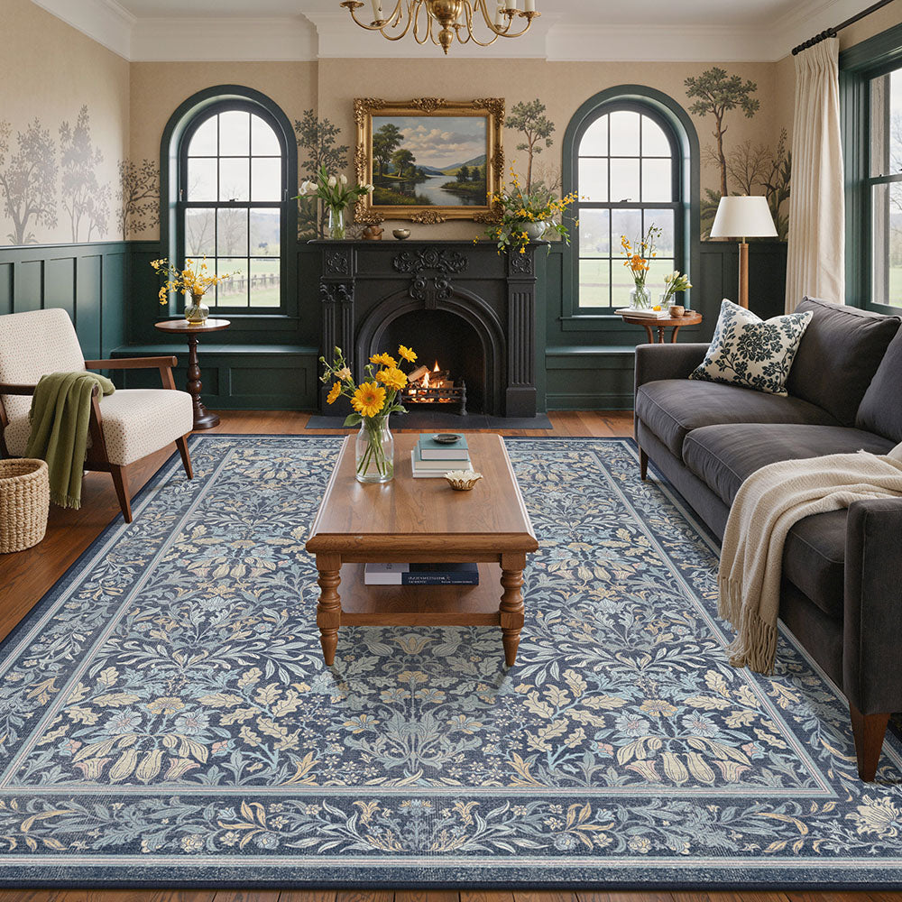 Runa Washable Vintage Floral Print Blue Rugs
