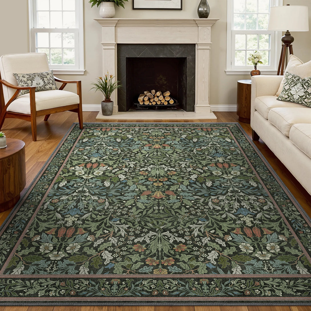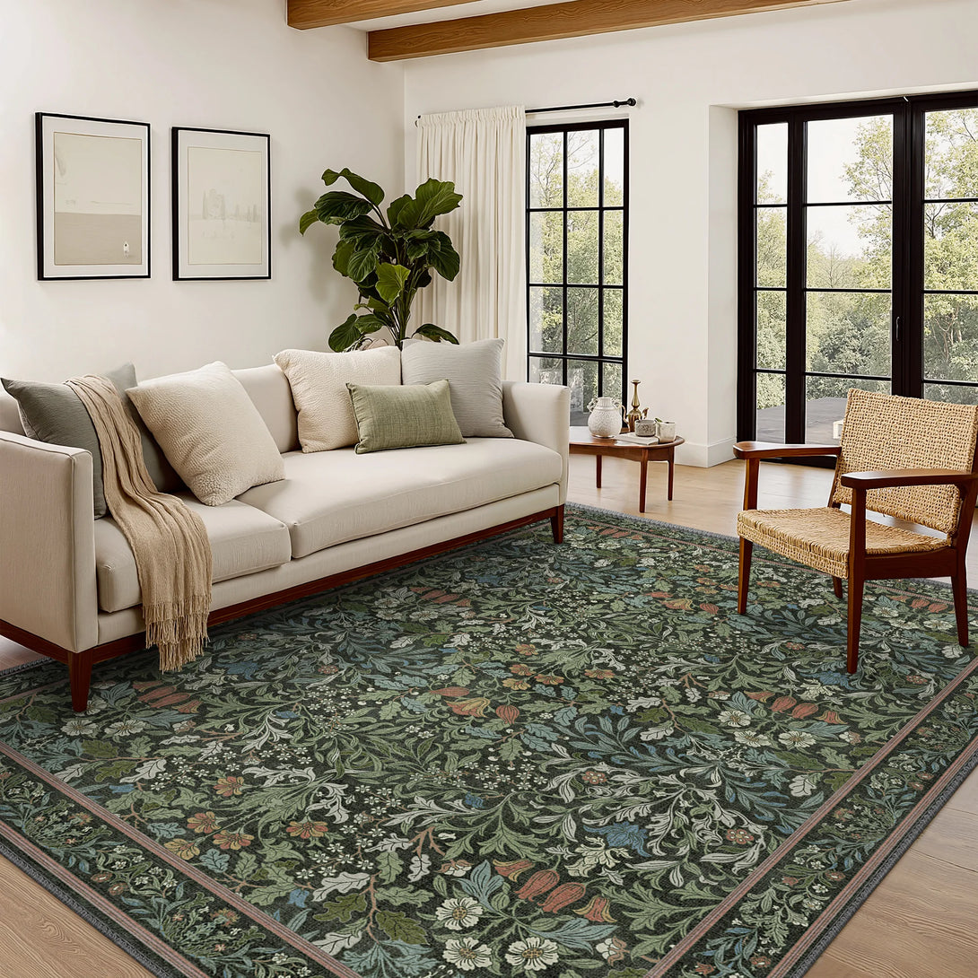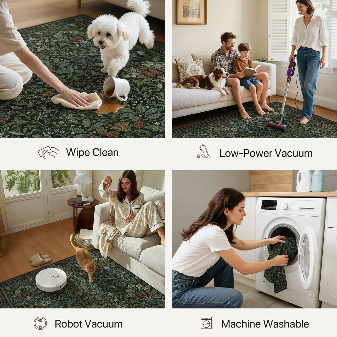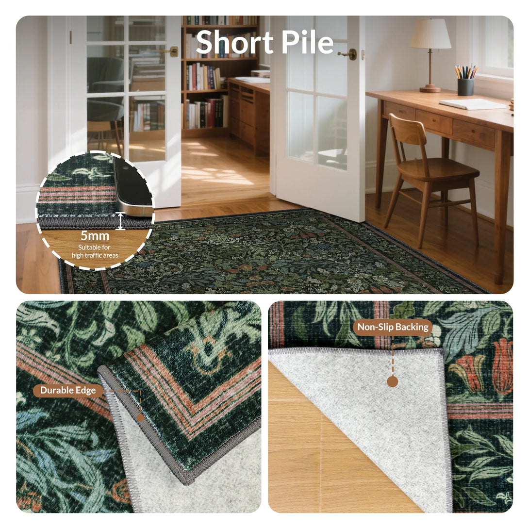 Runa Washable Vintage Floral Print Rugs – Machine Washable, Pet Friendly & Spill Resistant