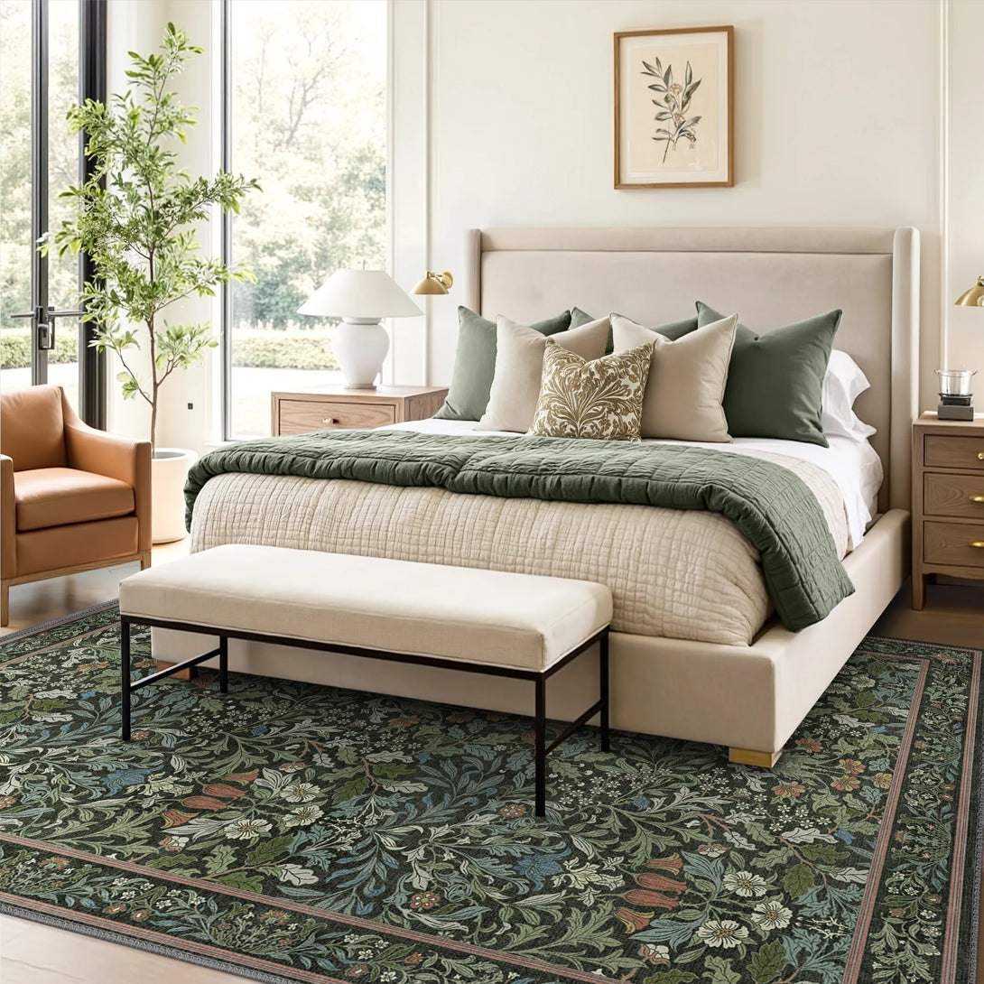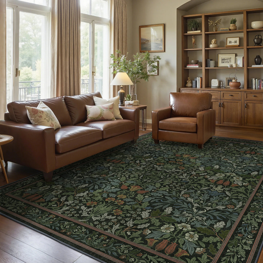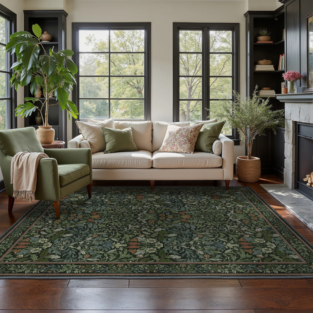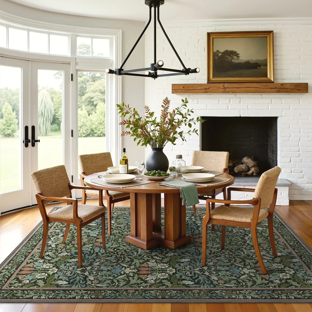 Runa Washable Vintage Floral Print Rugs – Machine Washable, Pet Friendly & Spill Resistant