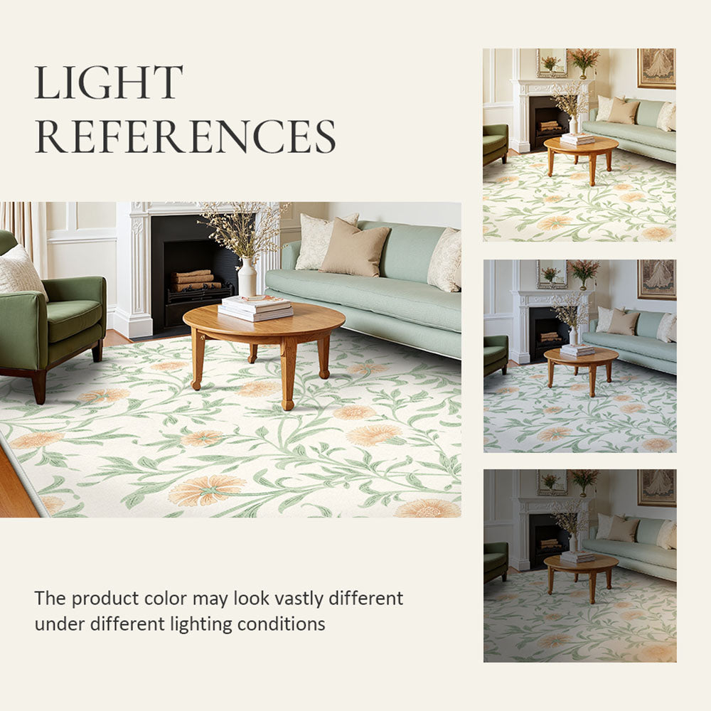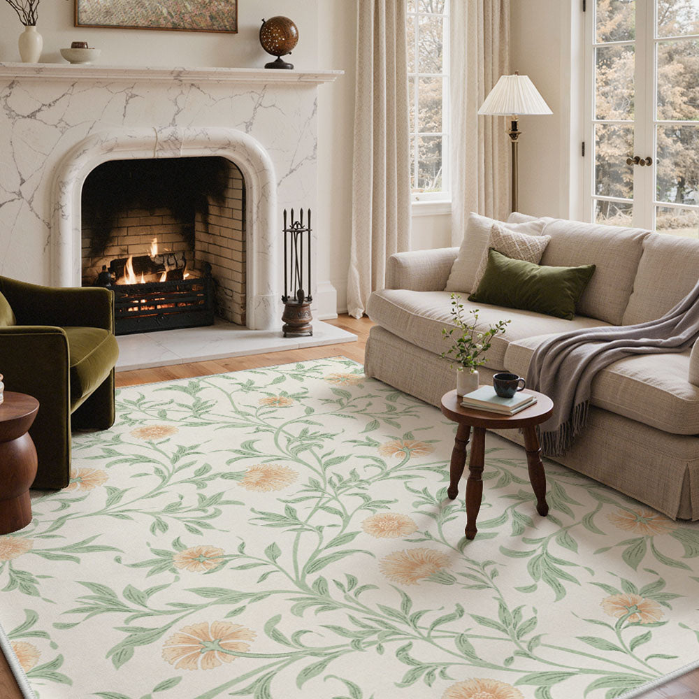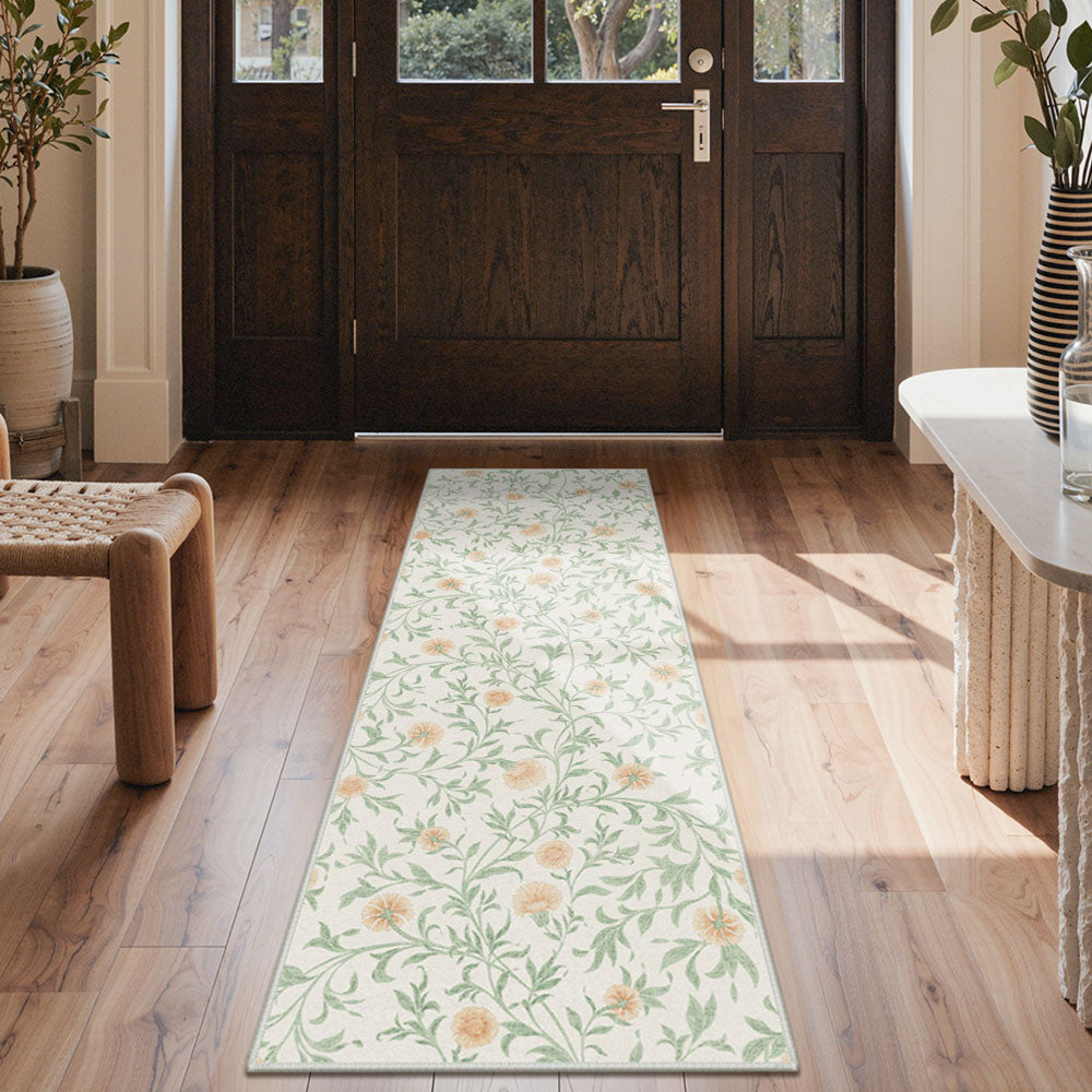 Solin Washable Morden Blooming Floral Green Rug – Machine Washable, Pet Friendly & Spill Resistant