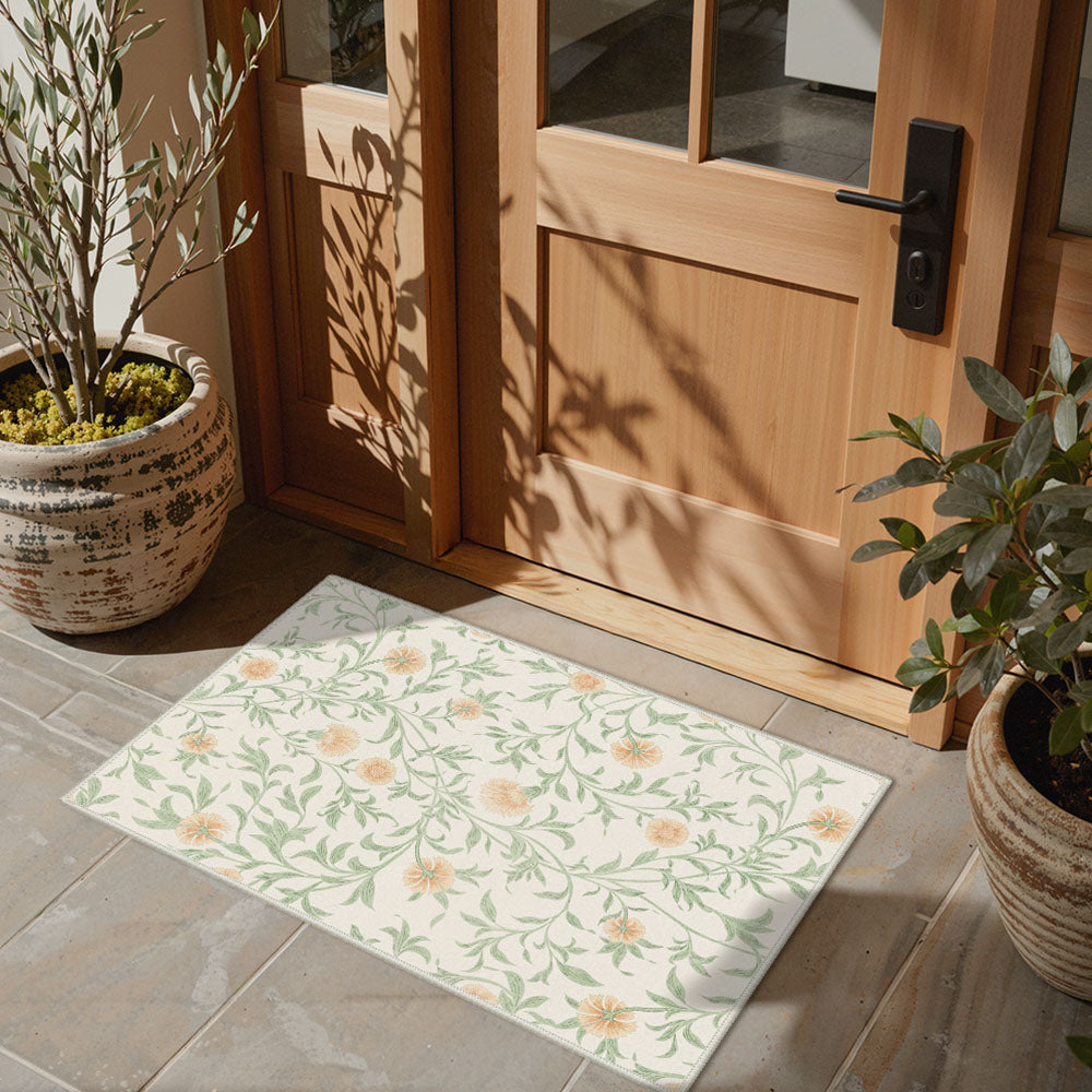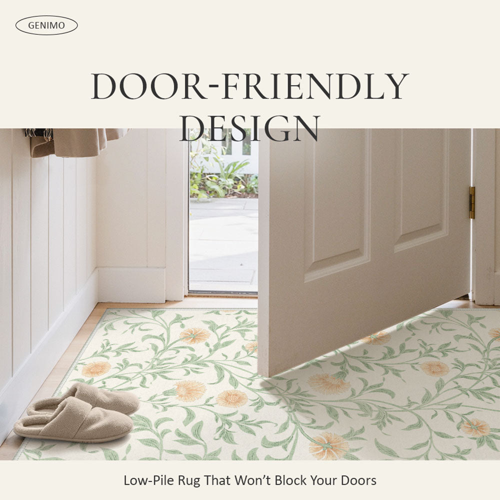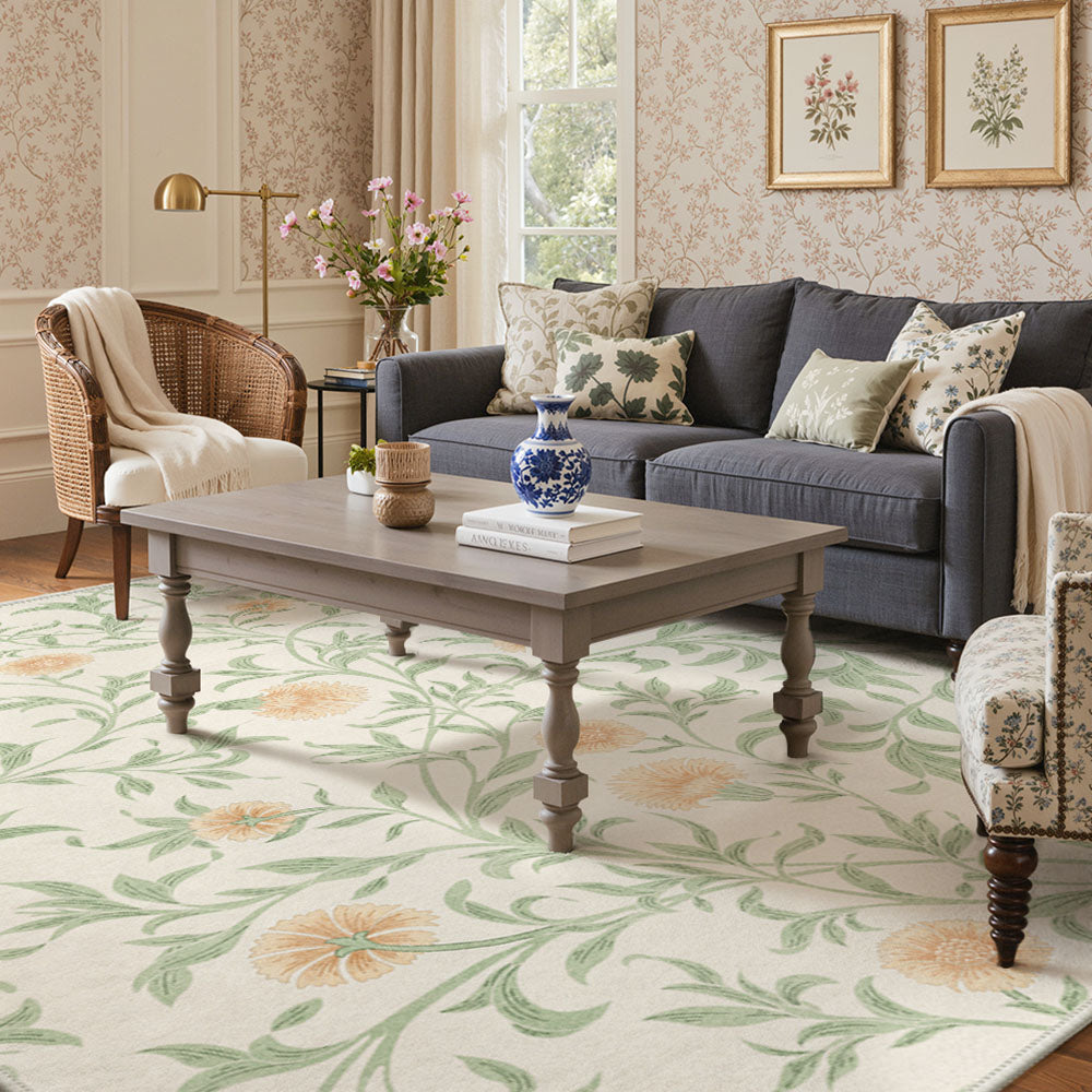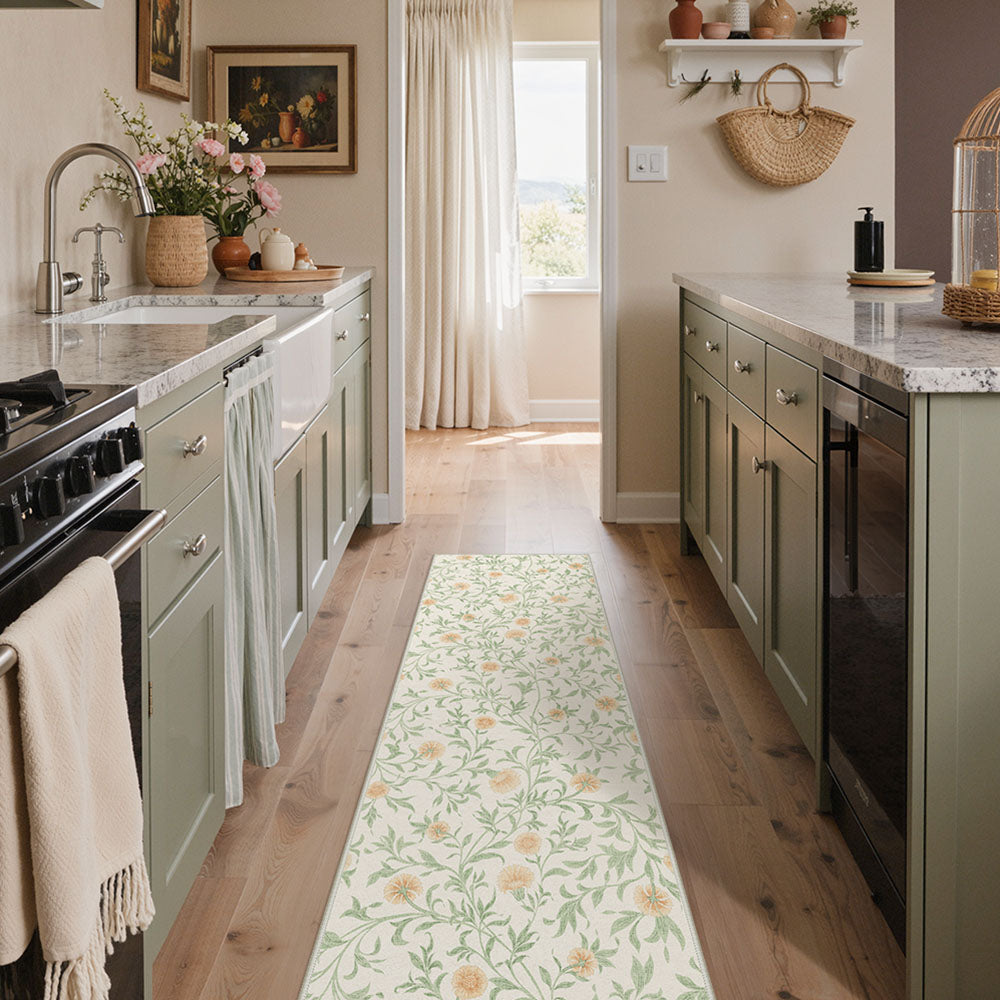 Solin Washable Morden Blooming Floral Green Rug – Machine Washable, Pet Friendly & Spill Resistant