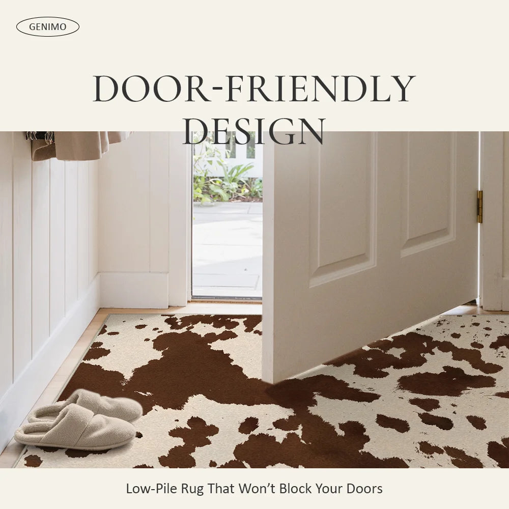 Tero Washable Morden Farmhouse Cow Print Rug– Machine Washable, Pet Friendly & Spill Resistant