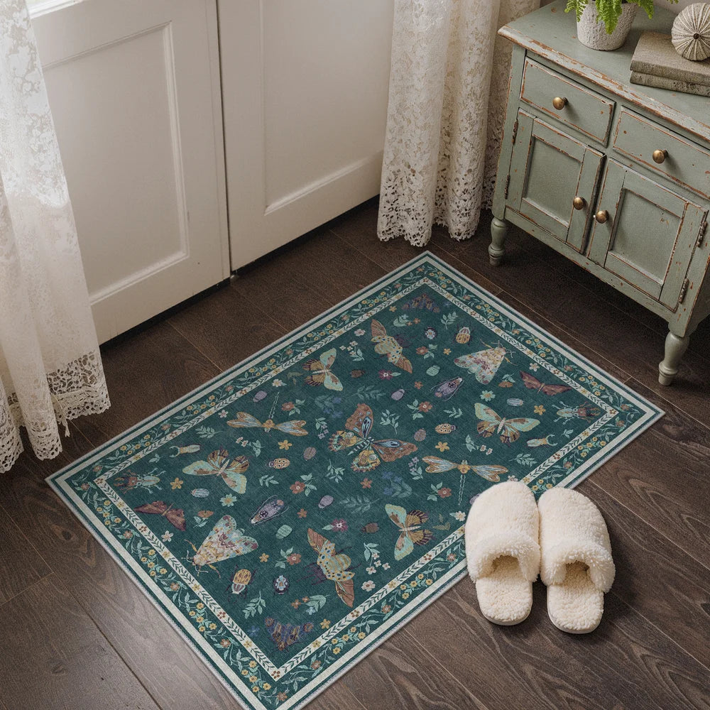 Elevate your space with GENIMO Torin Washable Modern Butterfly Inspect Rug, featuring a delicate butterfly pattern that adds charm and elegance. Crafted from ultral soft imitation cashmere, this rug offers a luxurious feel underfoot. Enjoy hassle-free maintenance with its washable design, while the non-slip backing ensures safety and stability on any surface. Perfect for adding a cozy, stylish touch to any room.