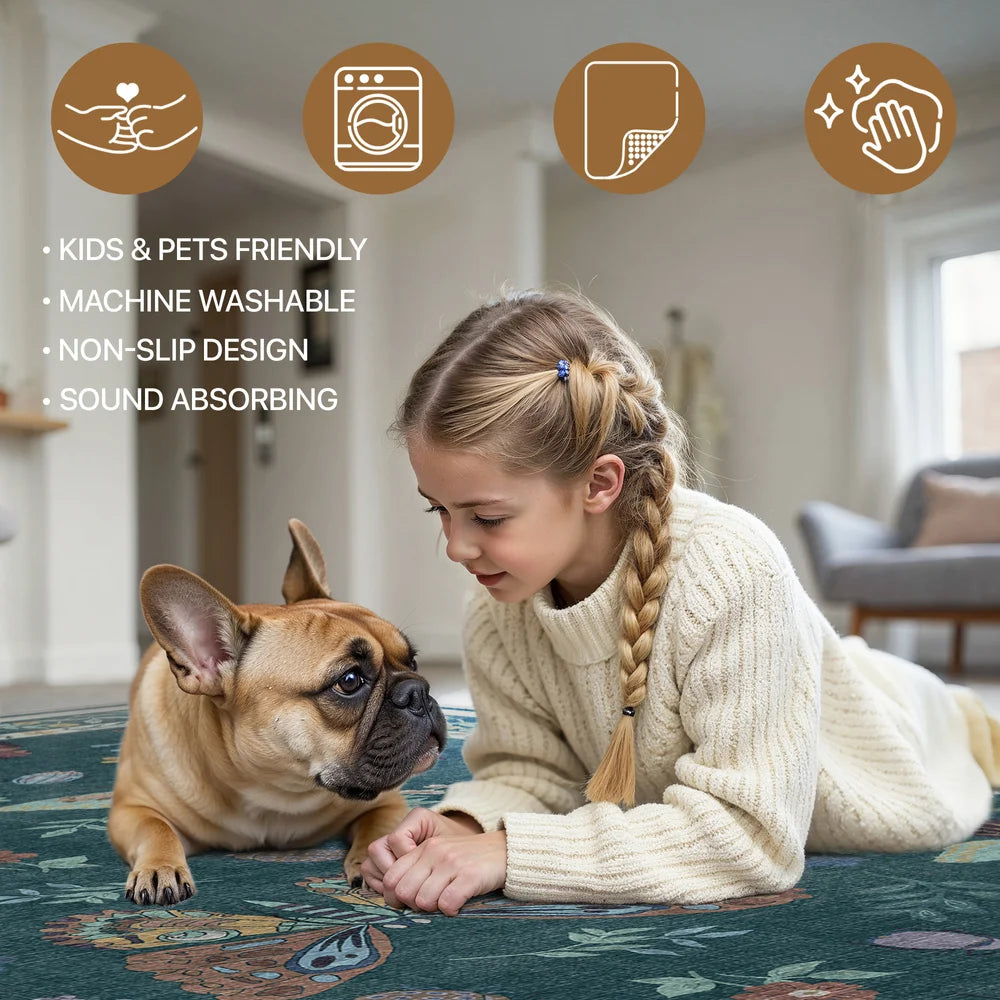 Built-in non-slip backing keeps the rug stable and safe, whether kids are running or pets are playing, even when chairs slide across it.