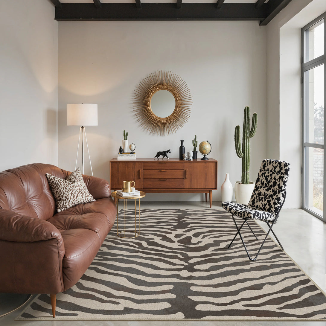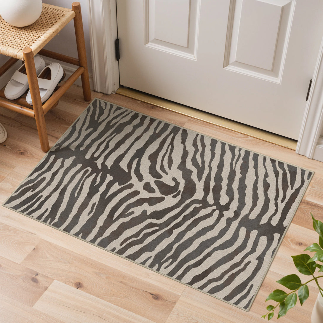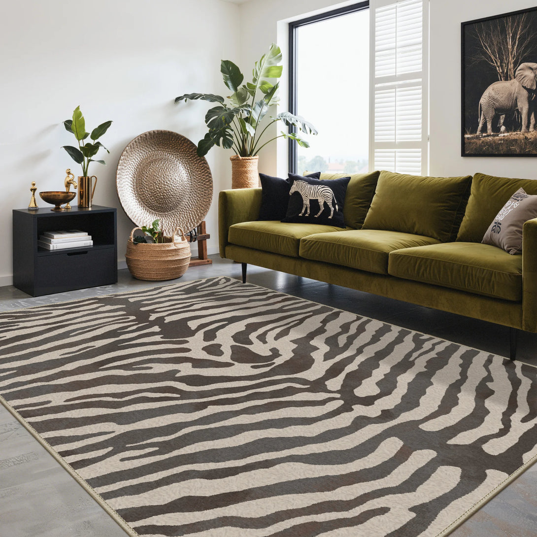 Zeno Washable Morden Zebra Print Rug– Machine Washable, Pet Friendly & Spill Resistant